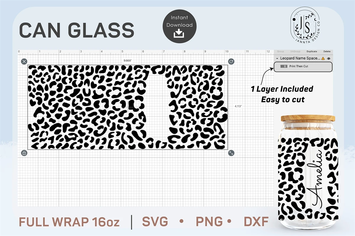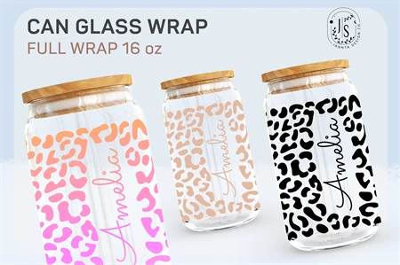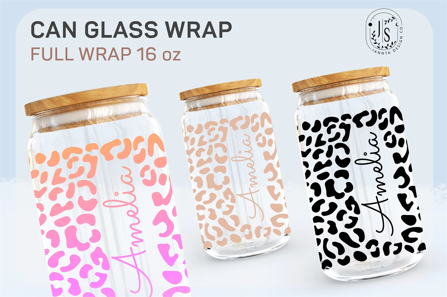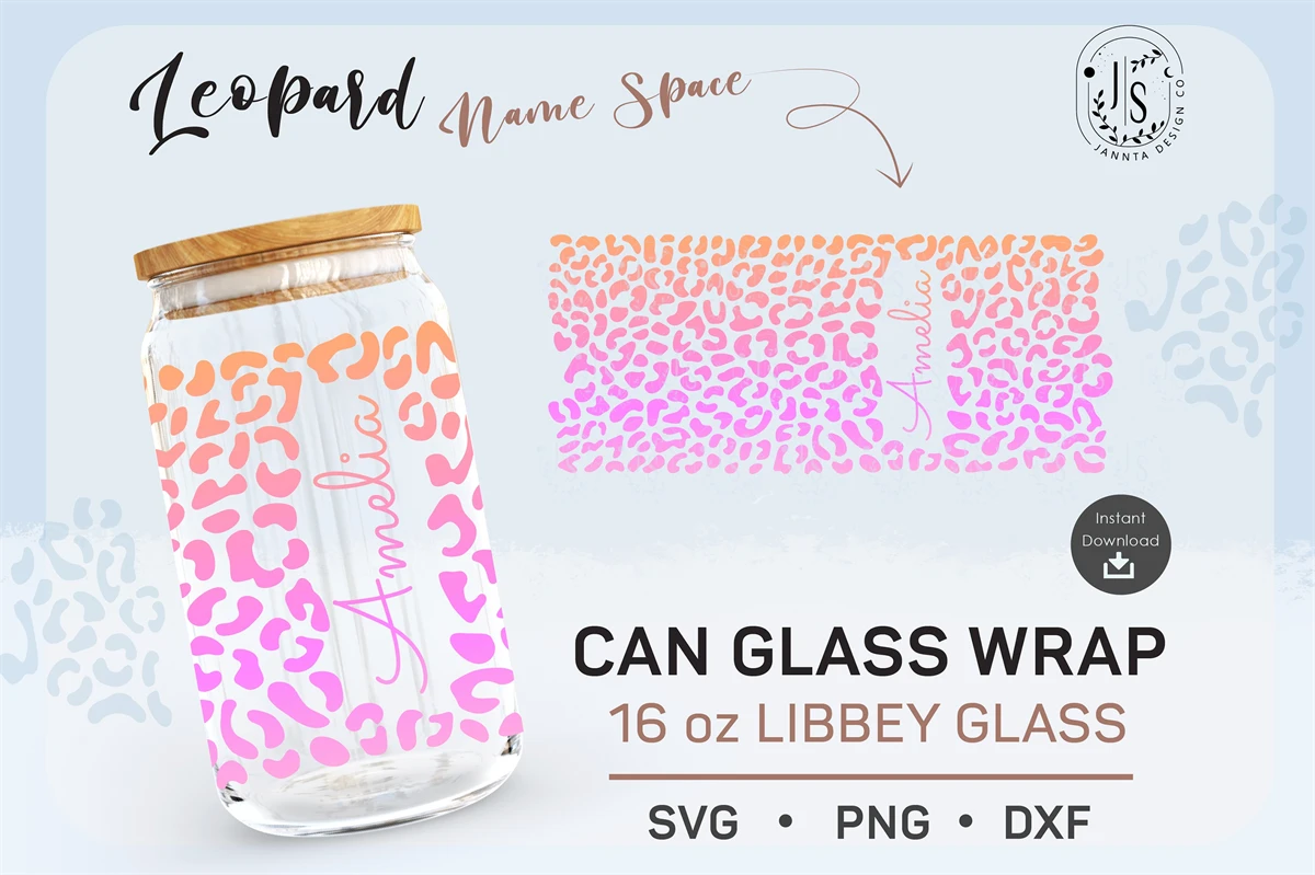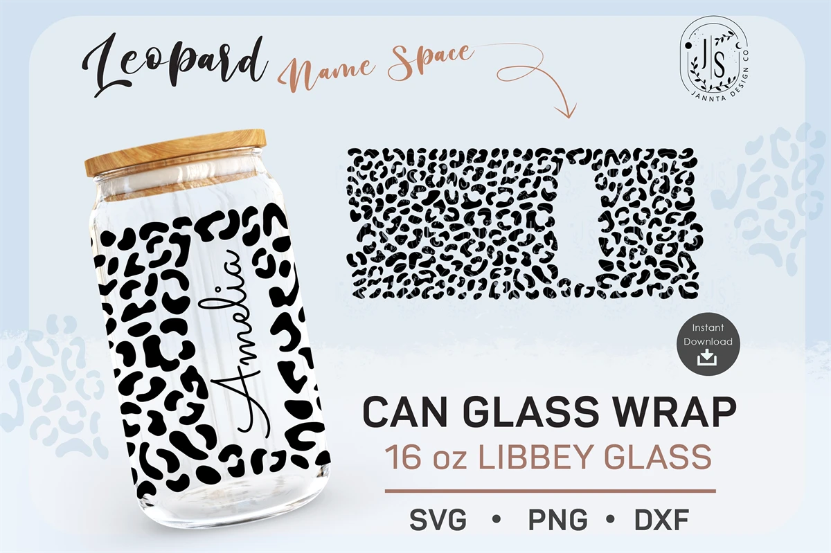 Leopard Print SVG 16oz, Space Name Svg, Animal Skin SVG, Can Glass Wrap SVG, Full Wrap for Can Glass, Seamless Wraps, PNG Digital Download Template