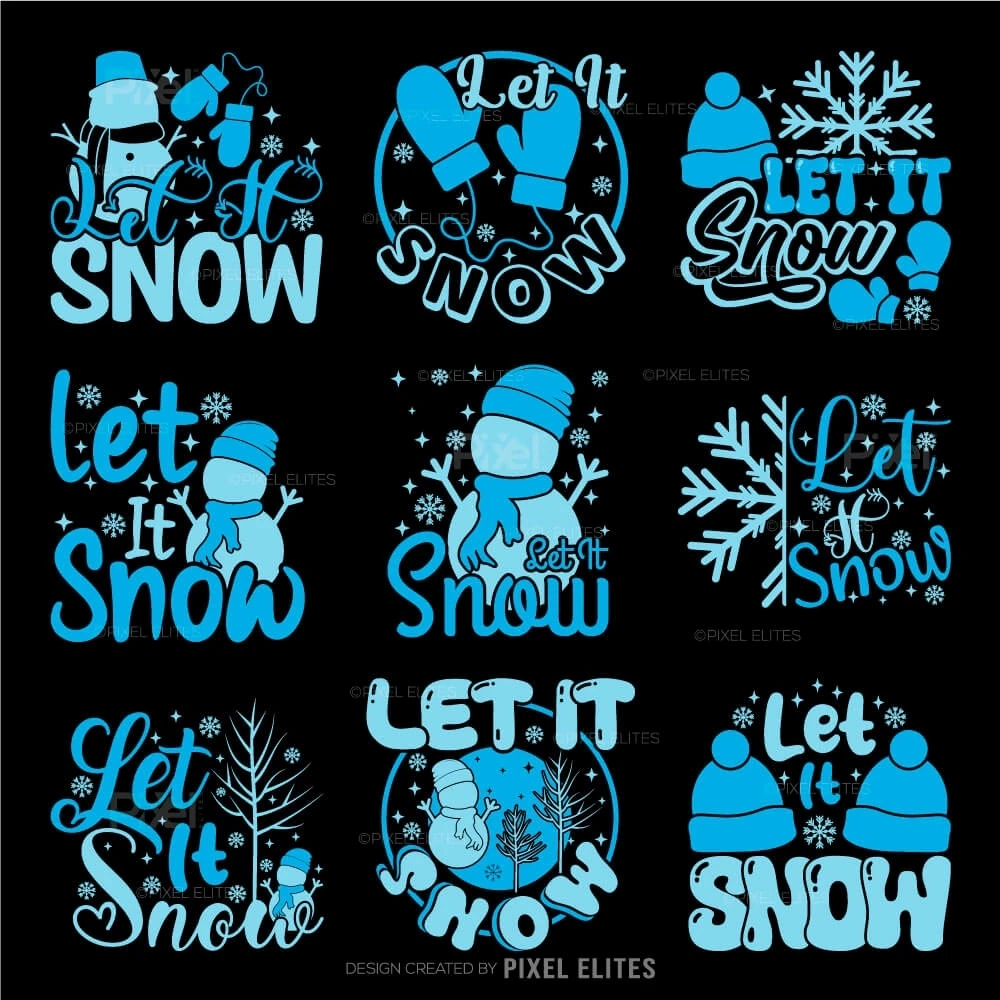 Let It Snow SVG Cut Files for T-Shirt Design - Welcome Winter Snowflakes