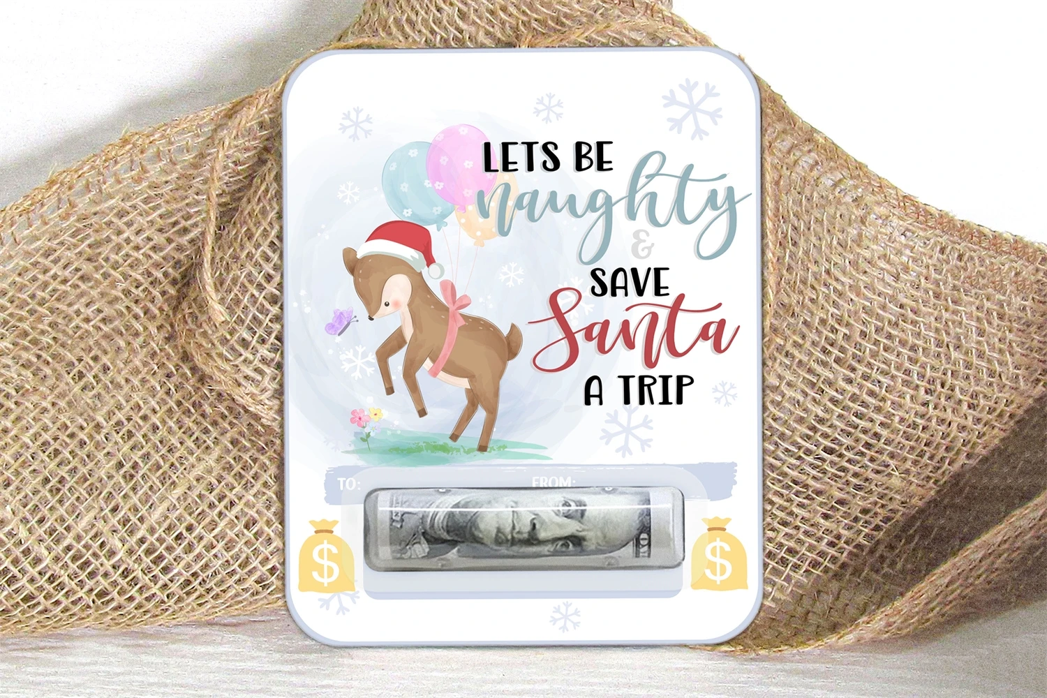 Lets Be Naughty Save Santa a Trip Christmas Money Card PNG,