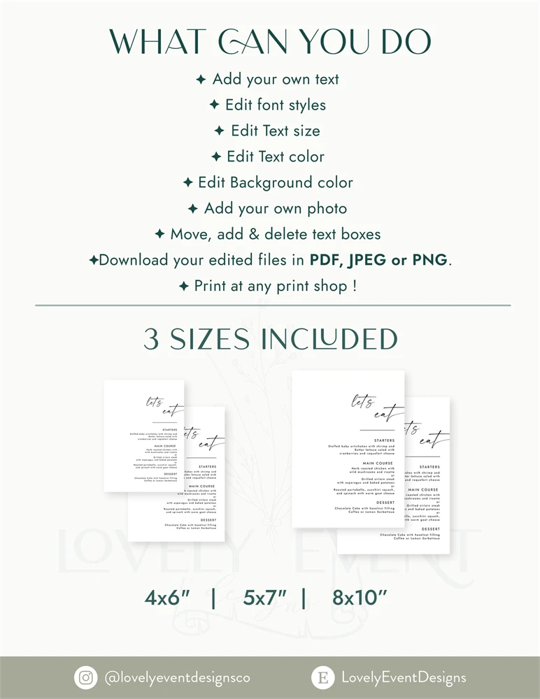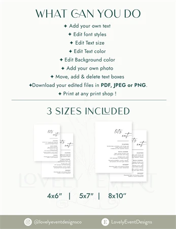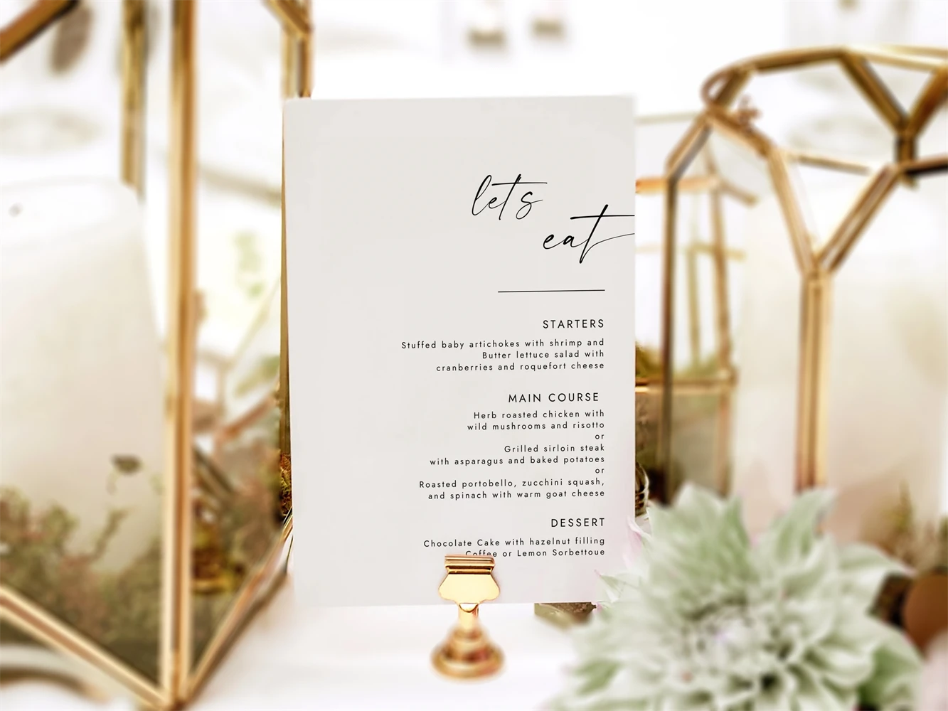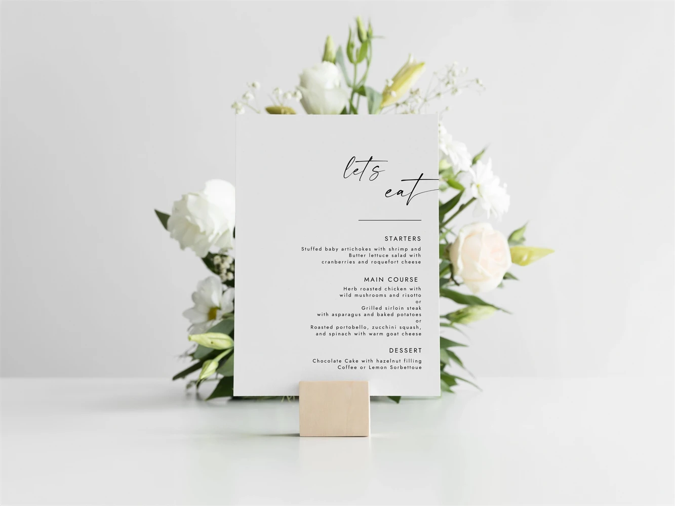 Let's Eat Menu, Minimalist Wedding Menu Template, Modern Scr