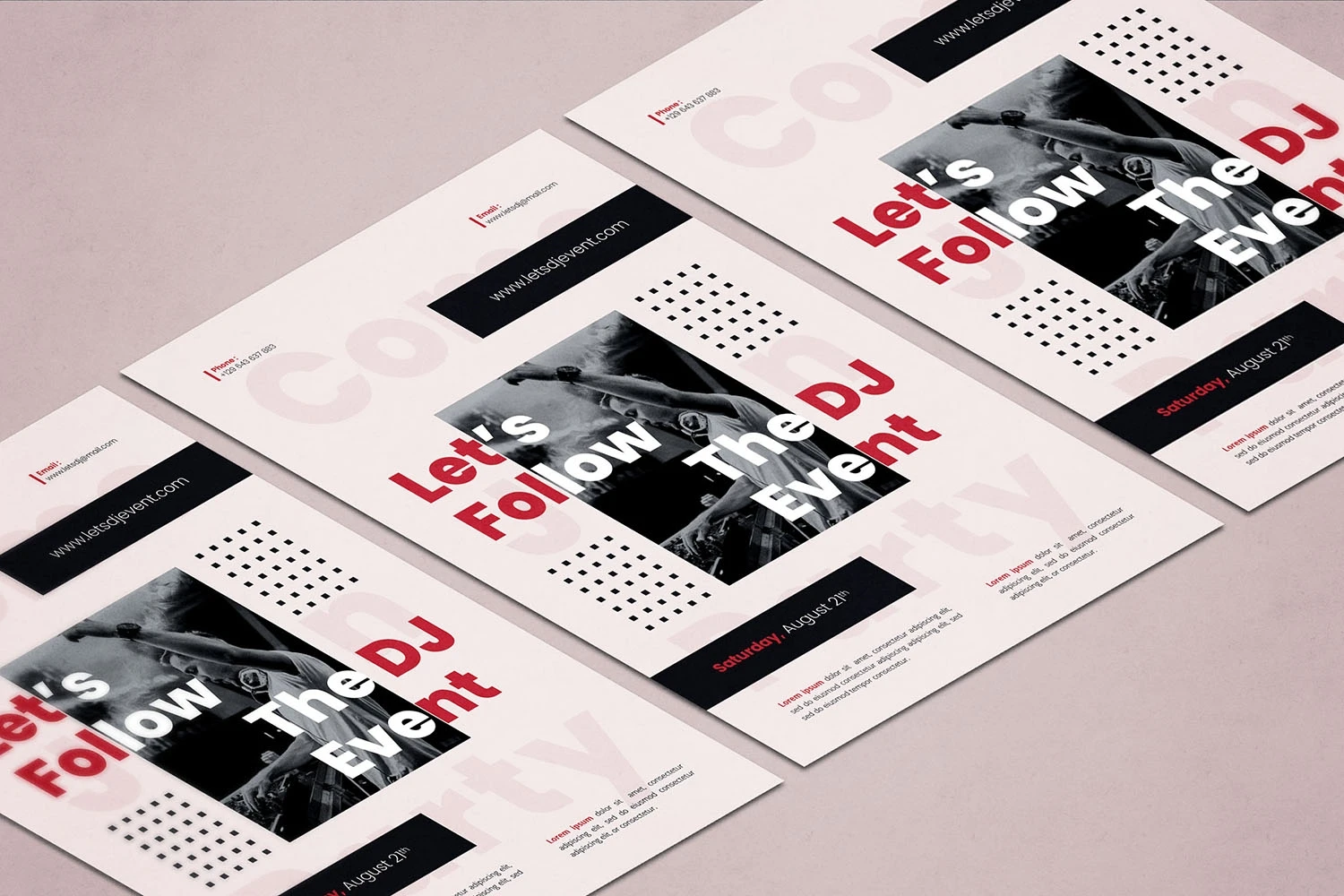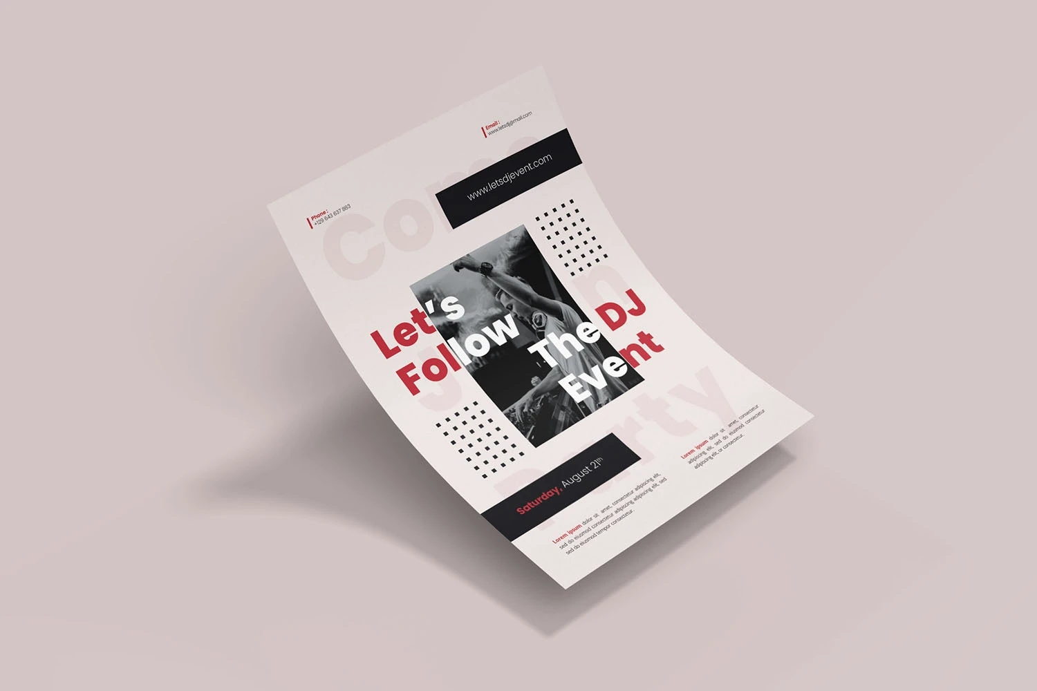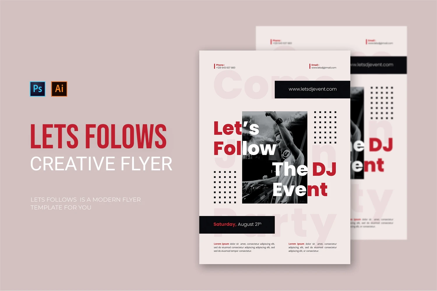 Lets Follows DJ Event - Flyer. This Flyer template is designed for your company's business needs. very clean and elegant, and also easily edited and adjusted to your liking