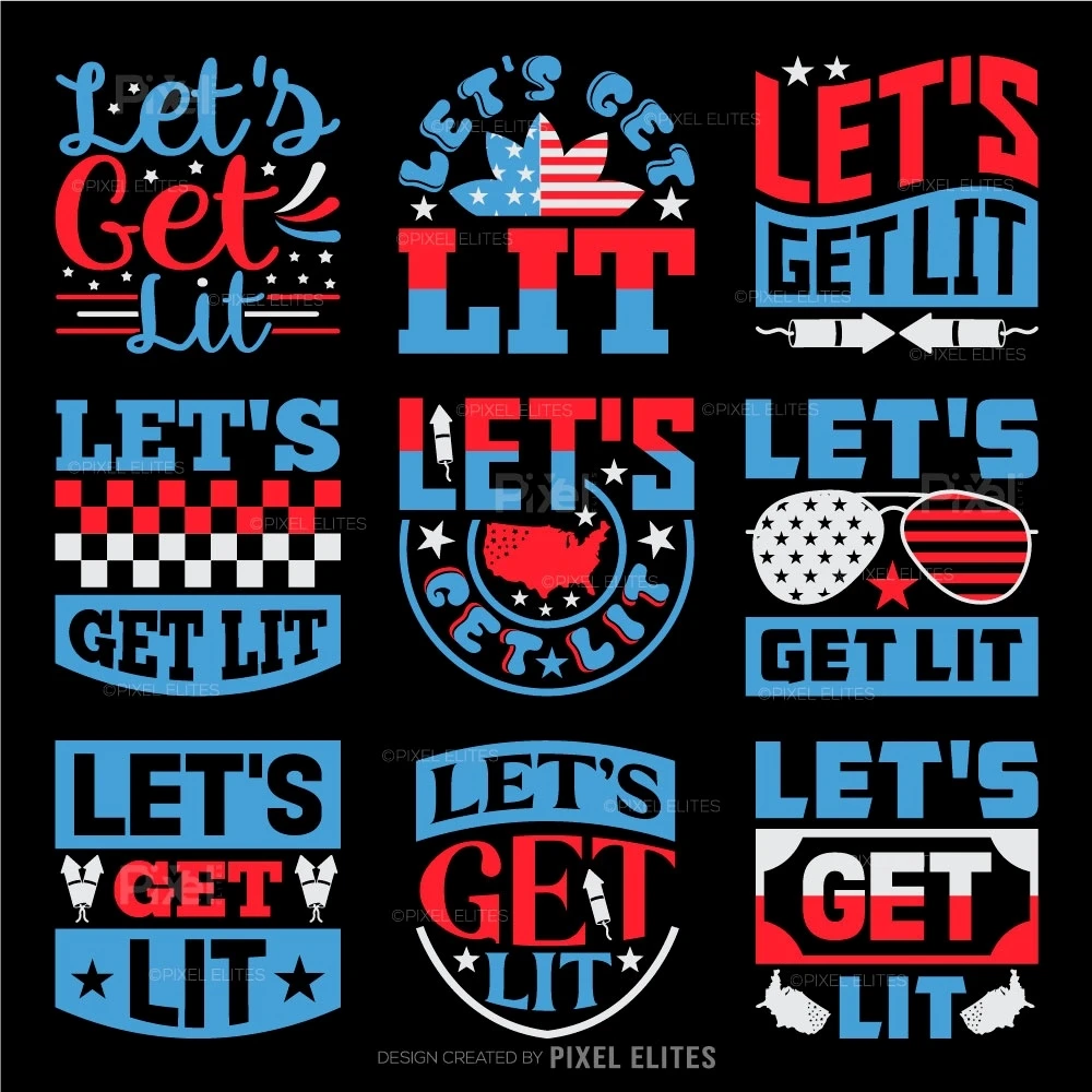 Lets Get Lit SVG Independence Day T-shirt Design - Memorable Day Bundle American Quote