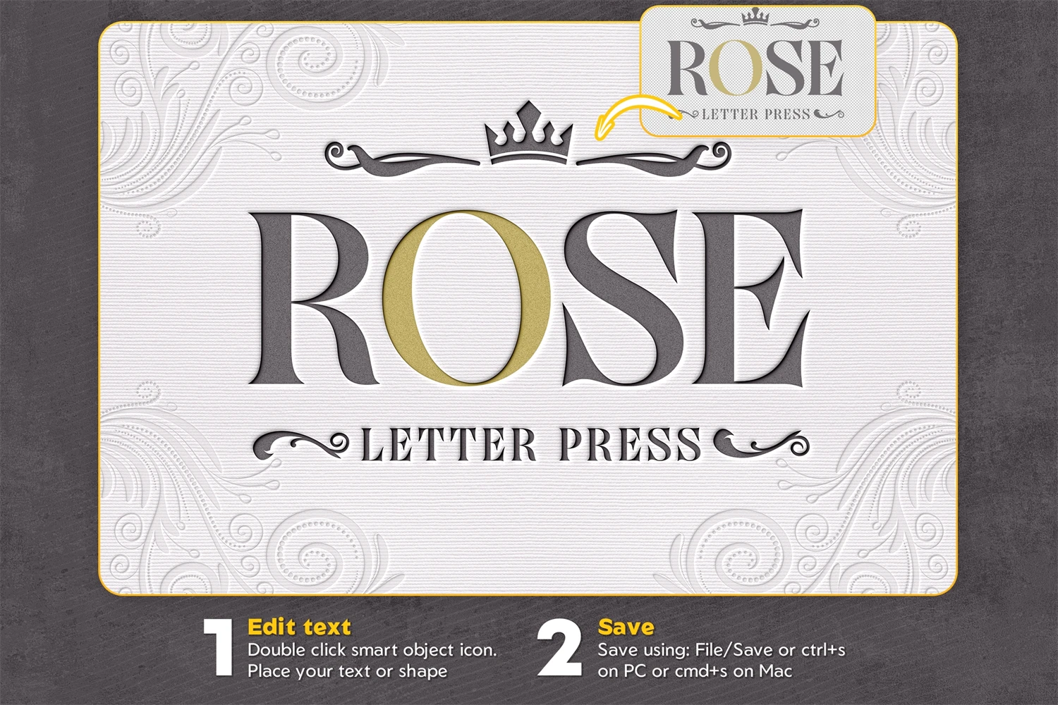It's so easy to get letterpress effect for your texts or logos. Just put your design into smart object and save. That's all)