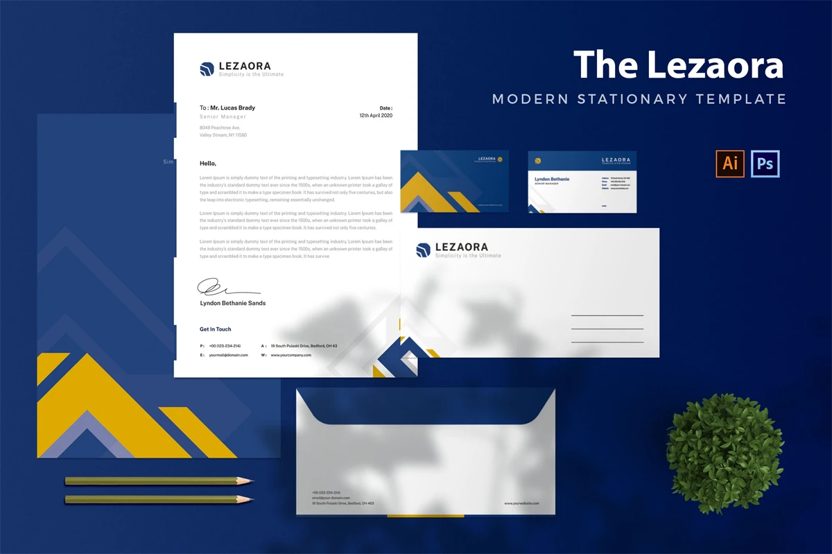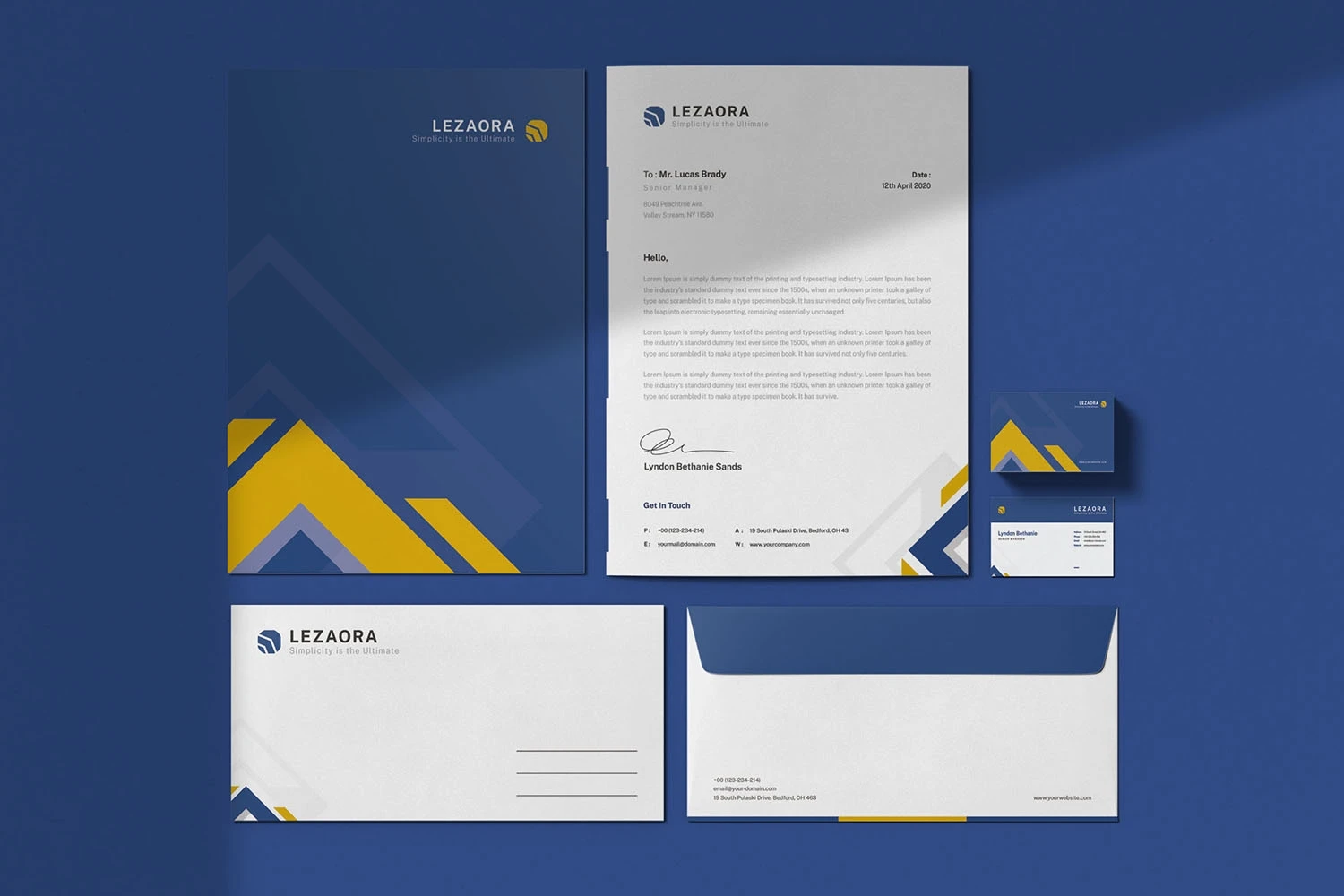 Lezaora Company - Stationary. This template is great for your business and this design will make your interested, elegant, and easily editable according to your needs. I hope you enjoy for this stationary.
