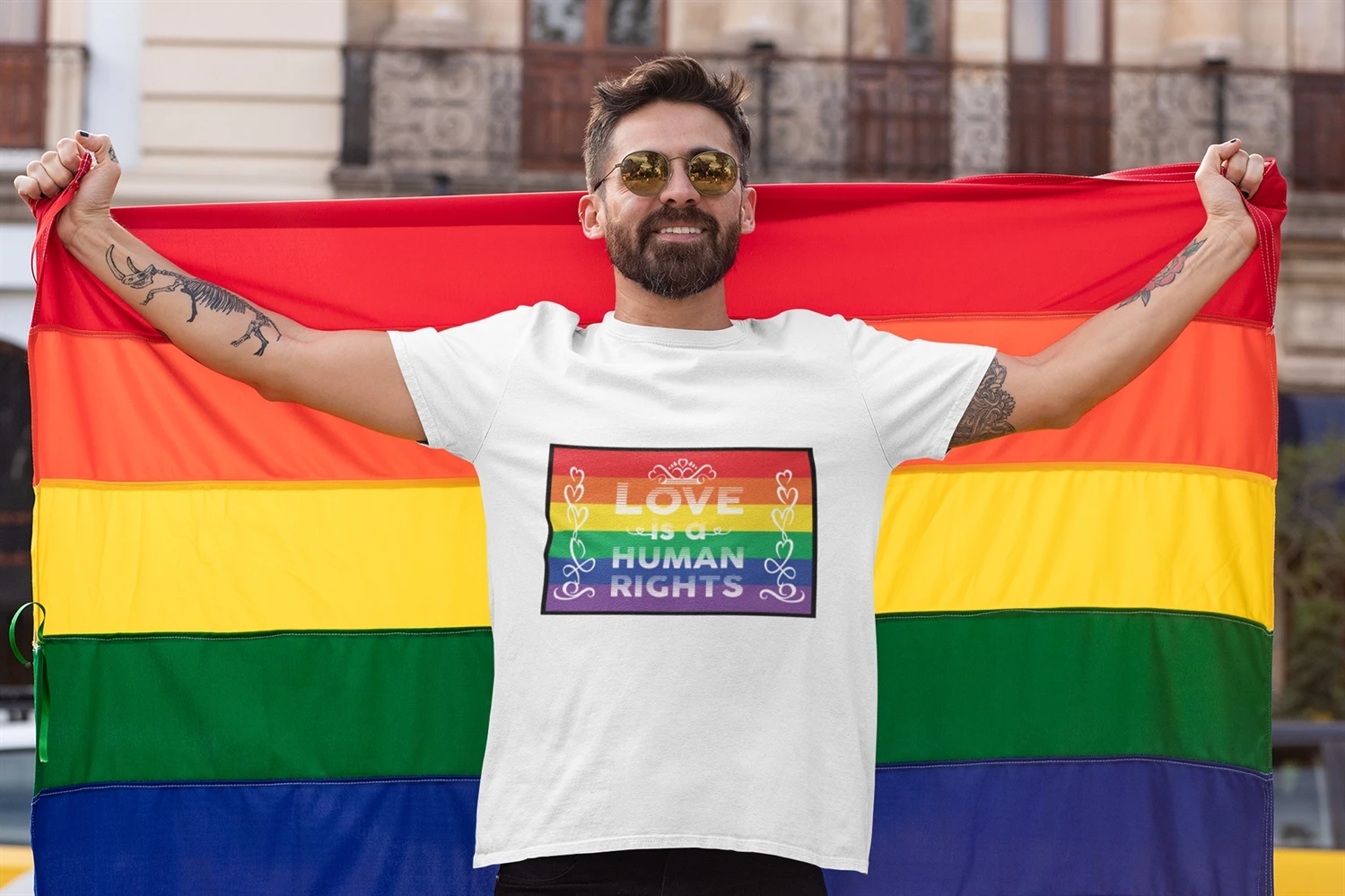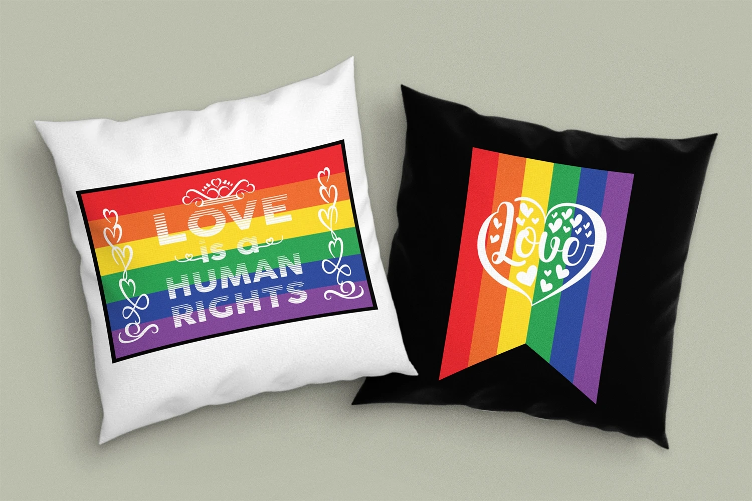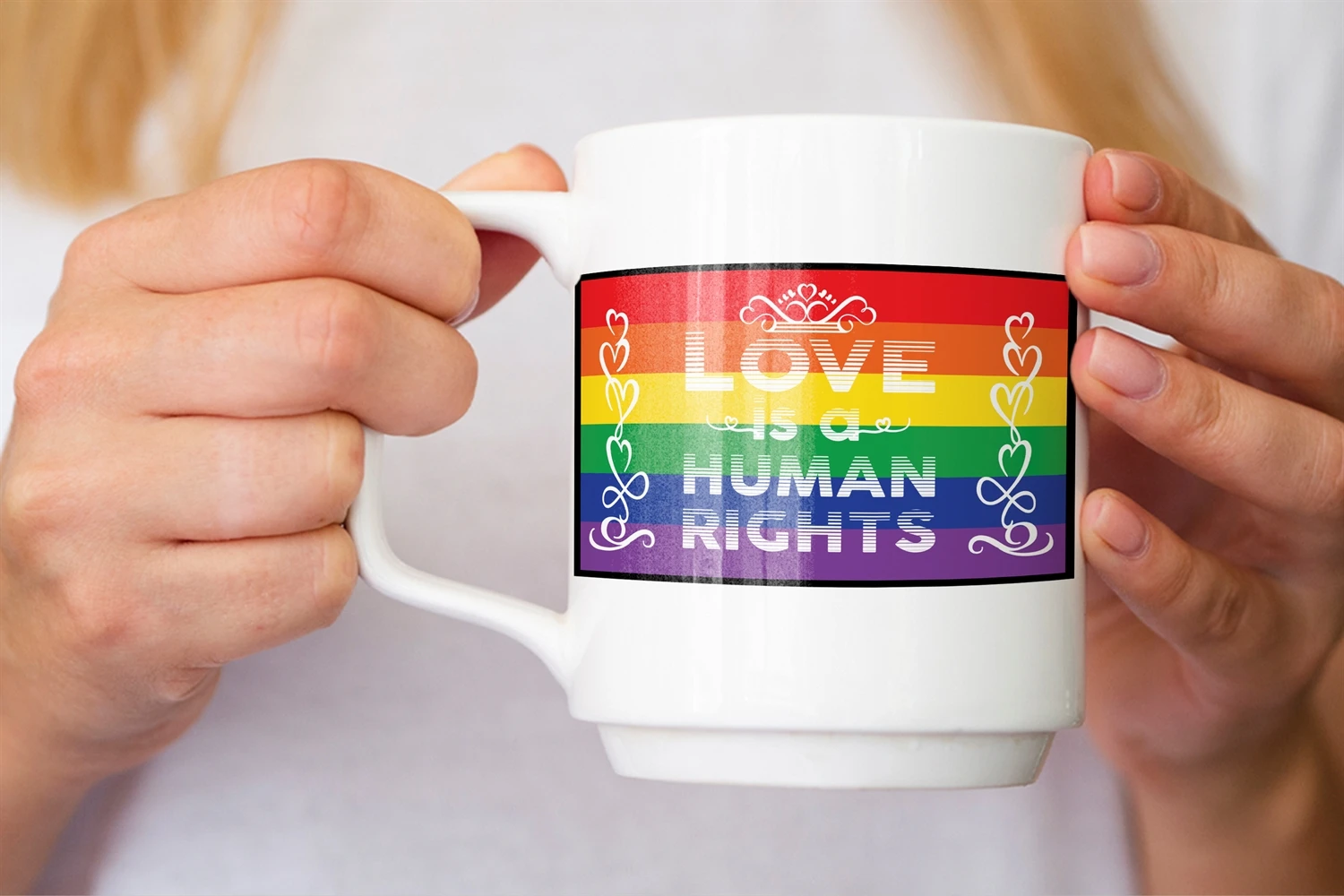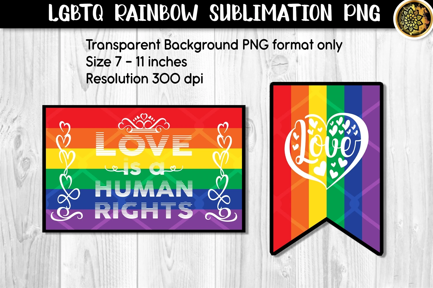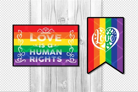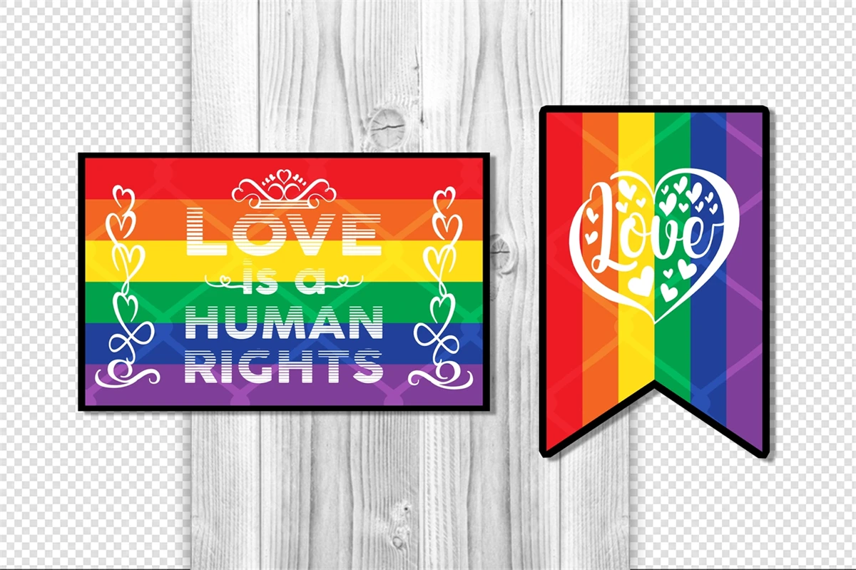 - 2 designs of LGBTQ symbols with the Phrase LOVE is a HUMAN RIGHTS
