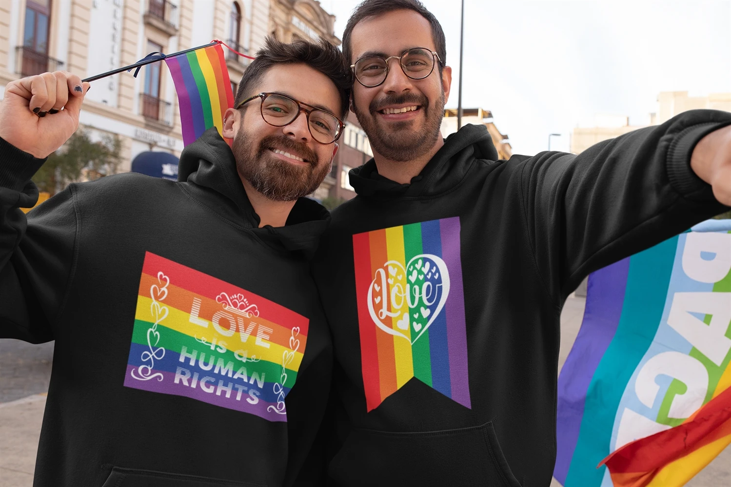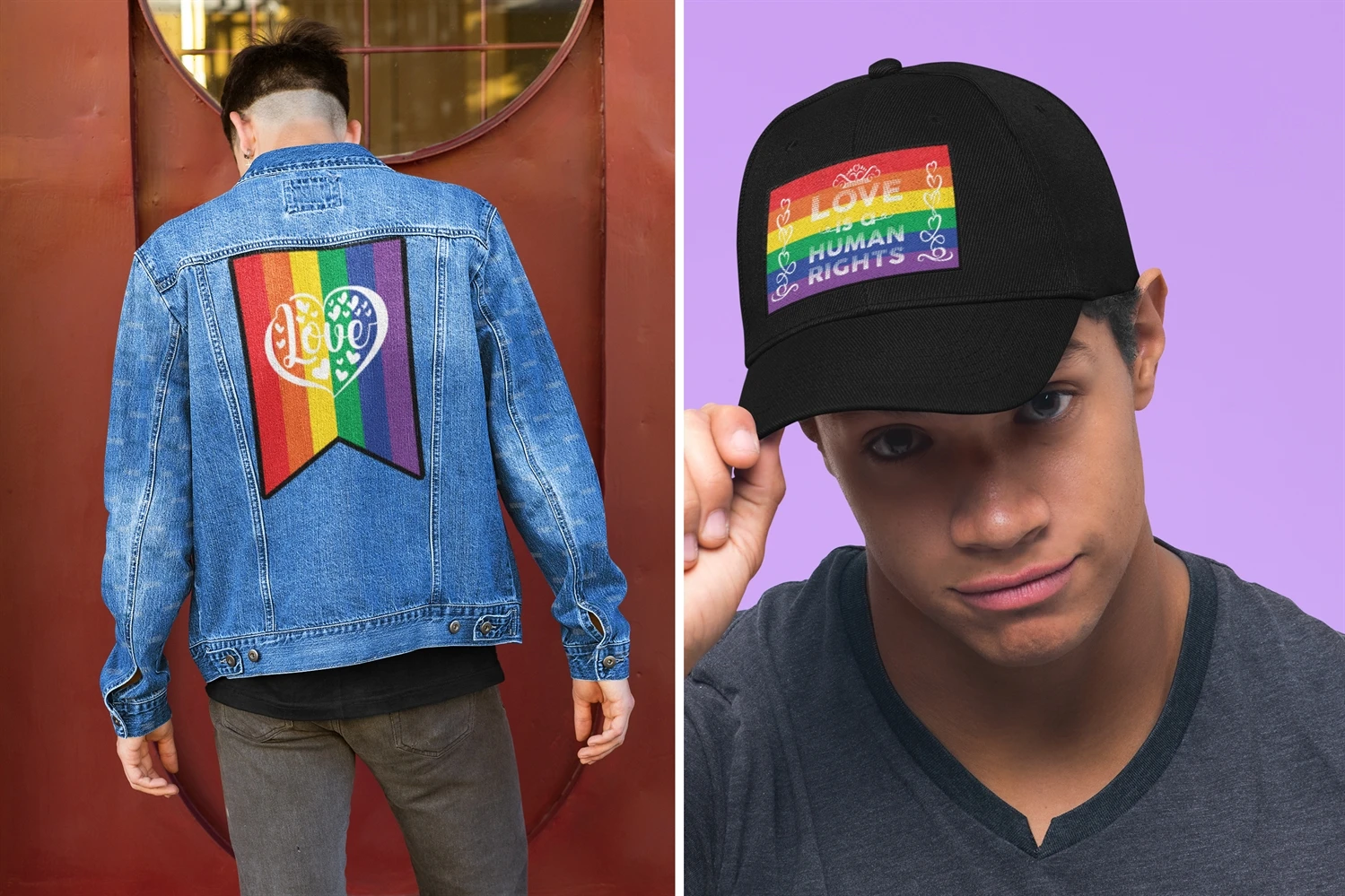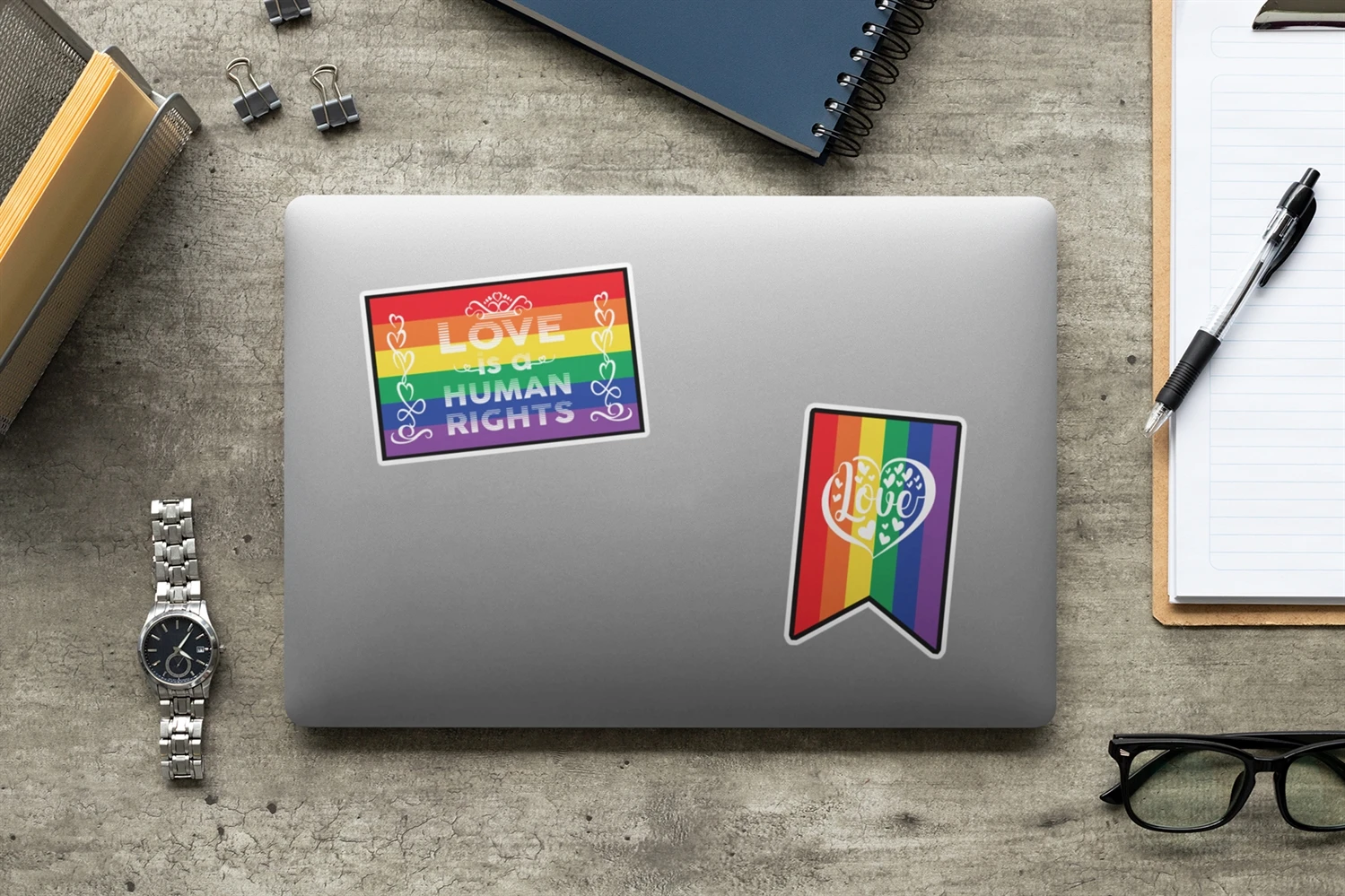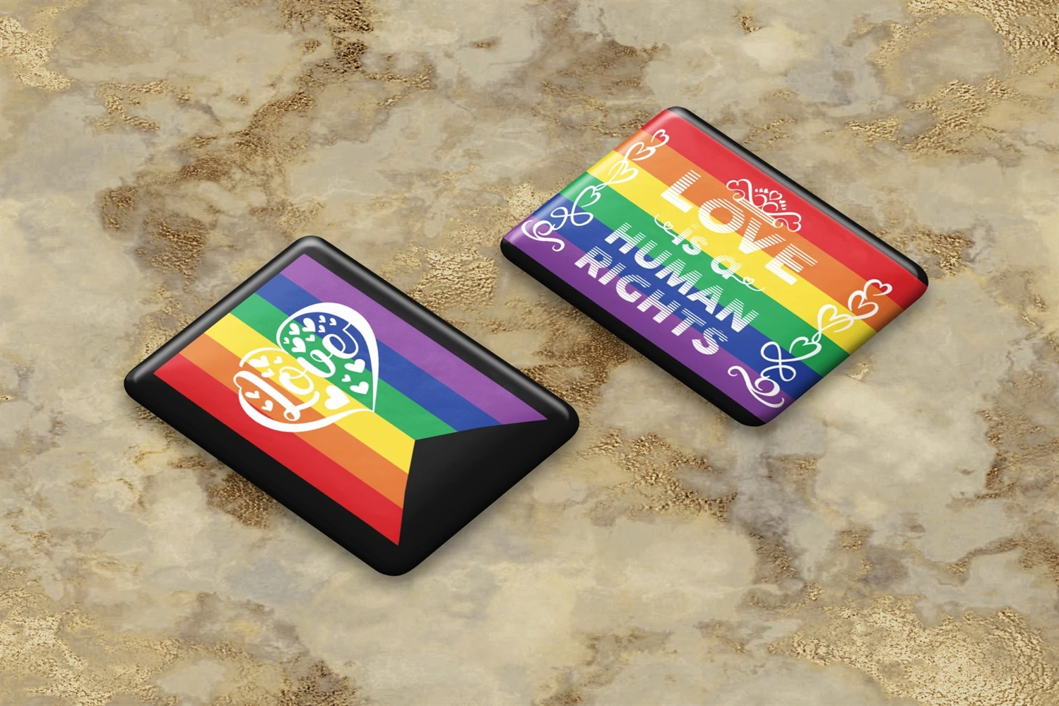 - 2 designs of LGBTQ symbols with the Phrase LOVE is a HUMAN RIGHTS