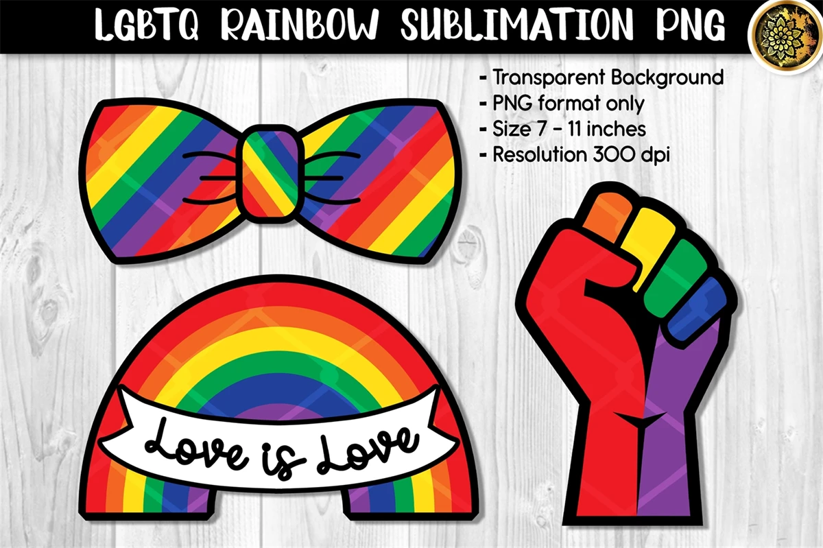 LGBTQ Pride & Rainbow Multi-color Flags Symbols Sublimation PNG Clipart for Customized T-shirts, Pin Buttons, Stickers, DIY Projects.