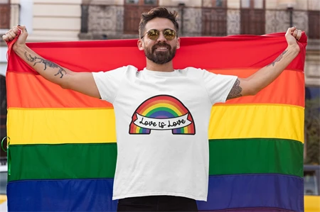 - 2 designs of LGBTQ symbols with the Phrase LOVE is a HUMAN RIGHTS