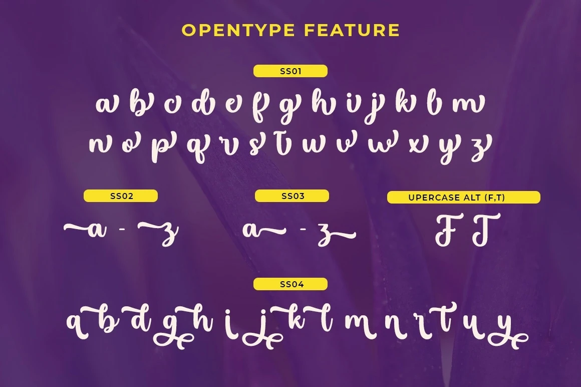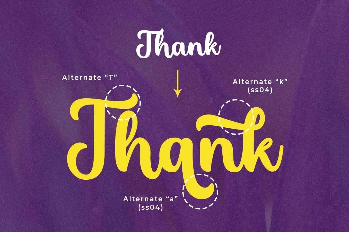 Lhetyan Script is a great family of brushes for all kinds of display uses from packaging to posters & logos to headlines. Lhetyan as a basic letterform is bold and clear and there are many alternatives for a more customized look. This typeface comes in uppercase, lowercase, punctuation, symbols & numbers, alternative style sets, binders, etc. Also supports multilingual and PUA encoded already.