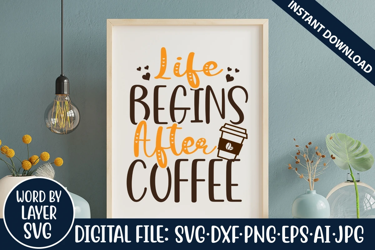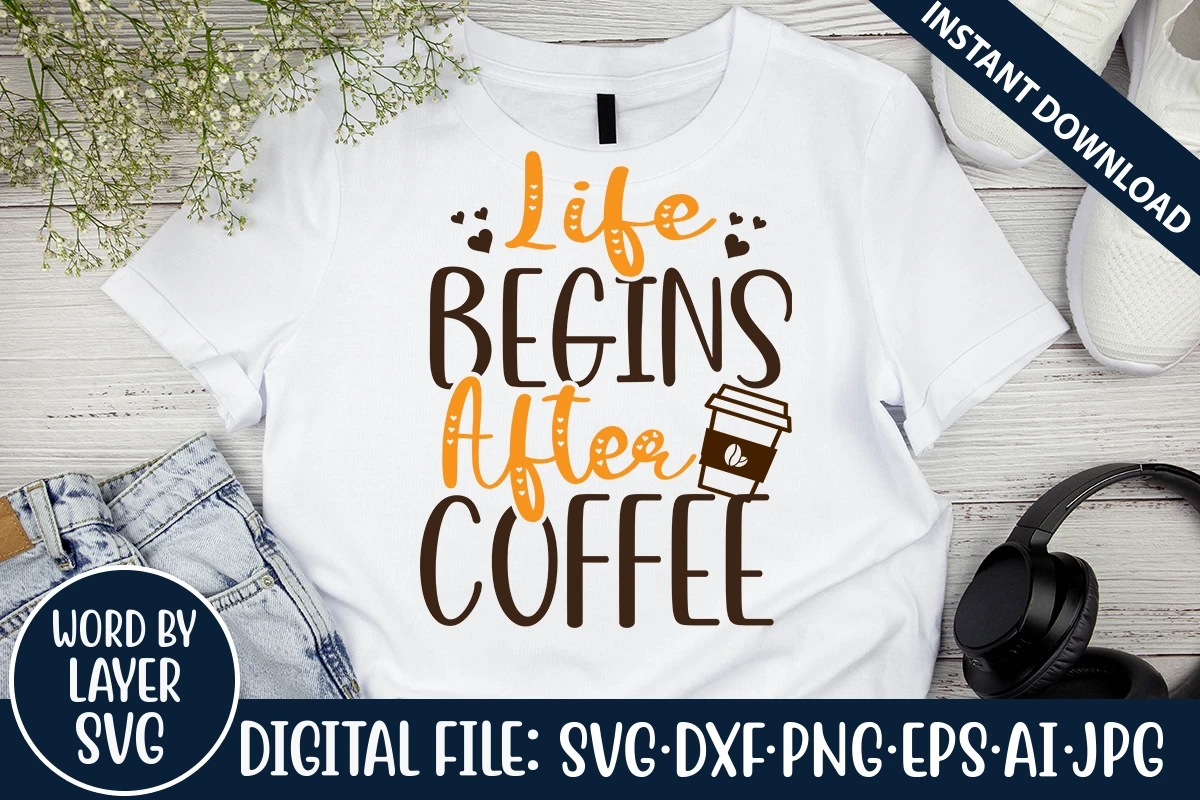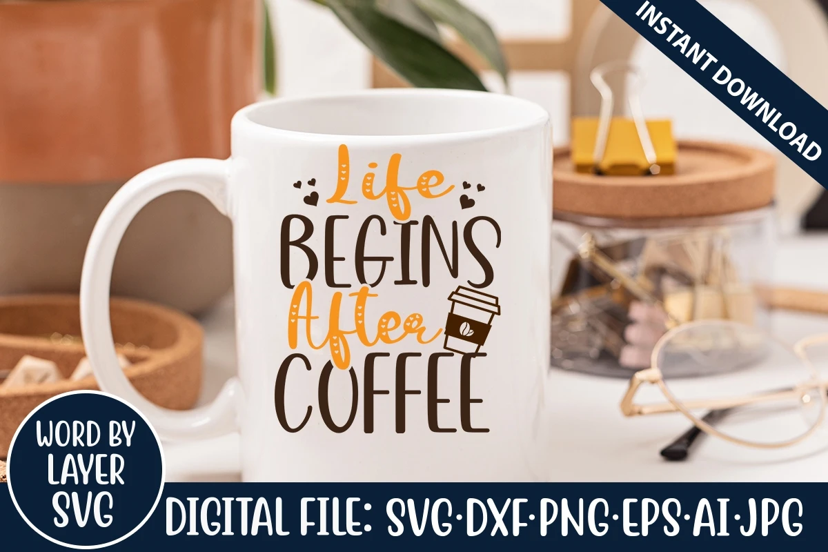 Life Begins After Coffee SVG Design, SVG Cut Files