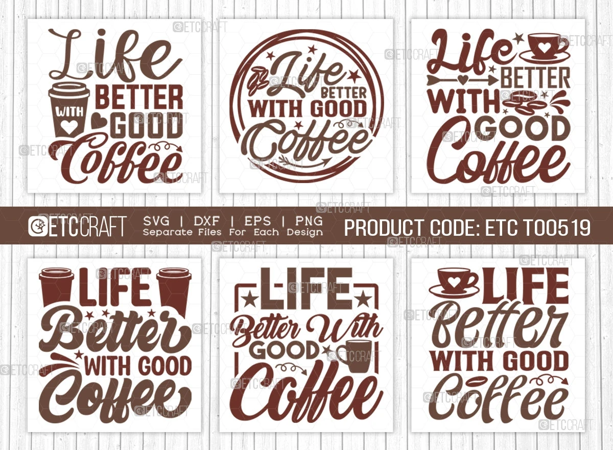 With the "Life Better With Good Coffee SVG Bundle," your love for coffee will find expression through visually appealing designs, leaving a lasting impression on anyone who sets their eyes on your creations. So, grab this bundle now and embark on a delightful journey of creativity and coffee appreciation!