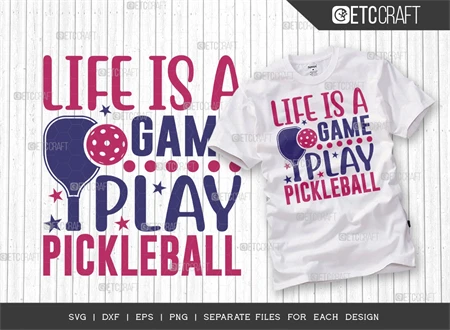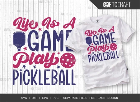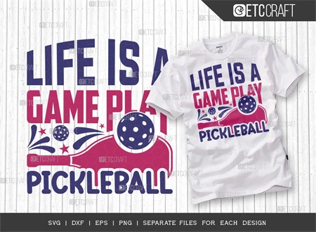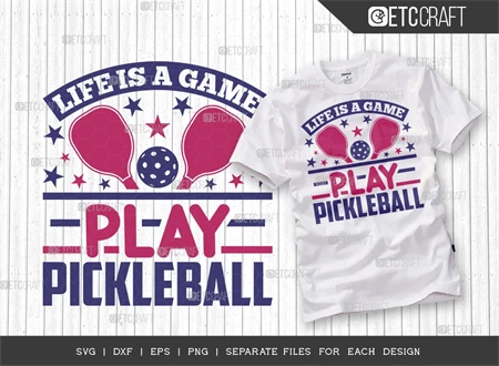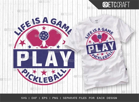 Introducing the "Life Is A Game Play Pickleball SVG Bundle" a vibrant and inspiring t-shirt design that celebrates the joy of pickleball. Whether you're a passionate pickleball player or a sports enthusiast, this bundle is a must-have for you. With its eye-catching design and clever pickleball quotes, it's the perfect addition to your wardrobe.