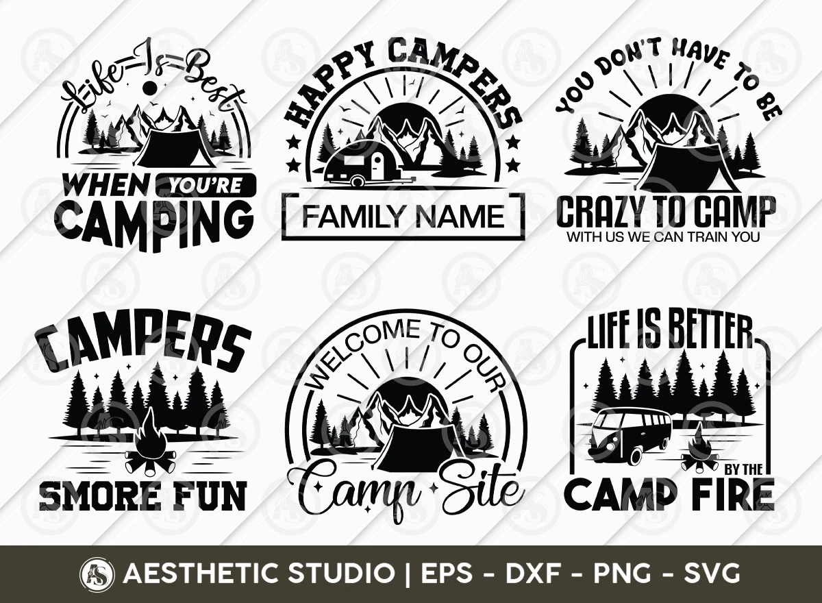 Perfect for All Camping Projects: Ideal for camping-themed merchandise, campsite signage, outdoor event promotions, camping trip memorabilia, and more, this bundle adds a touch of adventure, humor, and warmth to your camping-inspired creations.