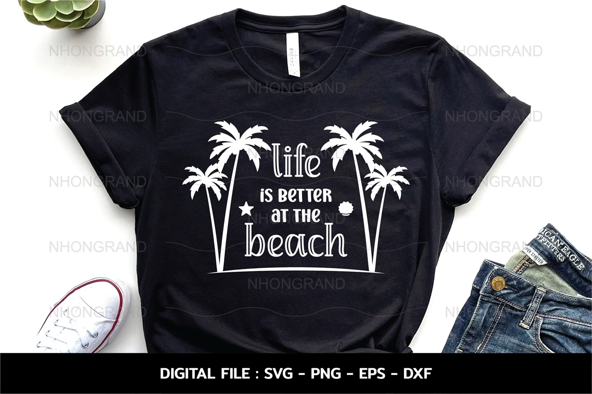life is better at the beach with coconut tree star fish shellfish Svg, t-shirt, Cricut Files, svg, png, eps, dxf, Instant Download