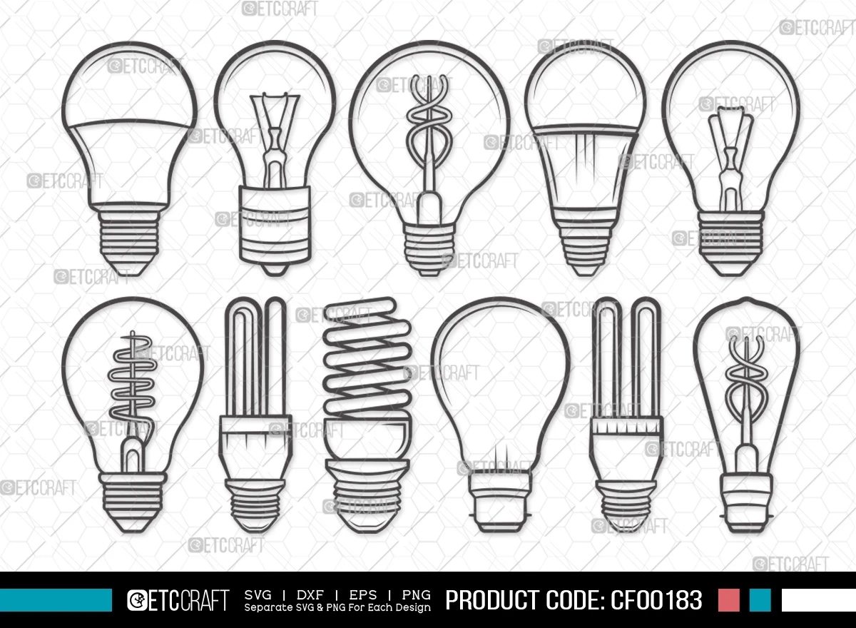 Light up your creativity with the Light Bulb Outline Incandescent Energy Saving Light SVG Cut File Bundle. Download now and let your designs shine with brilliance and style!