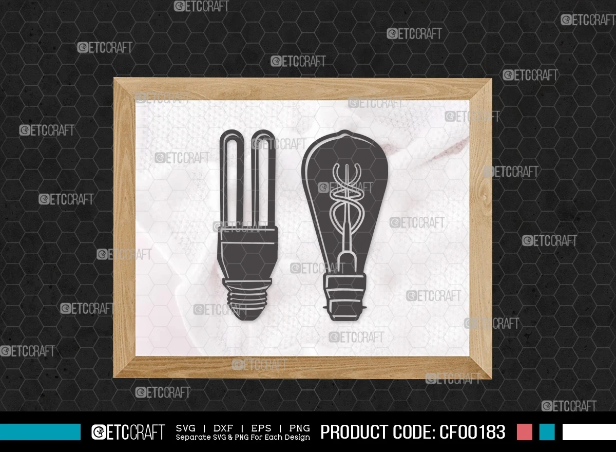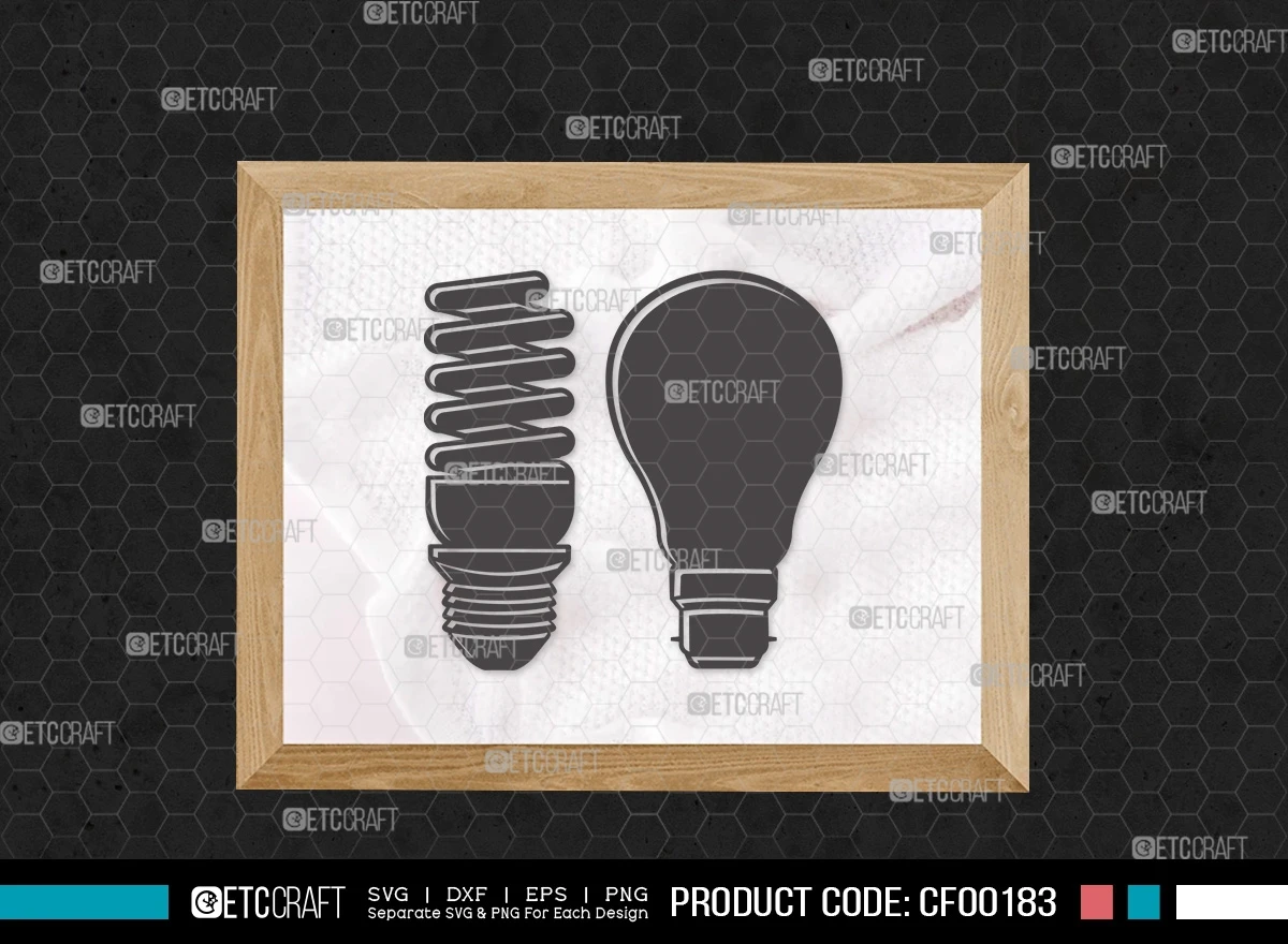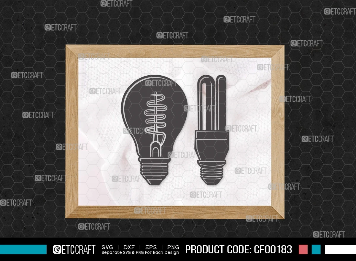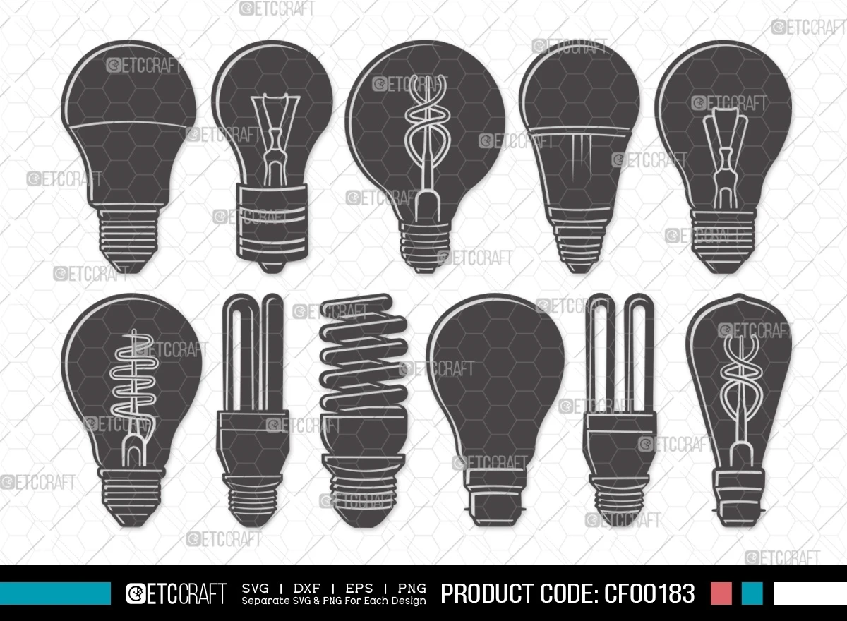 Light up your creative projects with the Light Bulb Silhouette Incandescent Energy Saving Light SVG Cut File Bundle. Download now and watch your designs shine with brilliance and creativity!