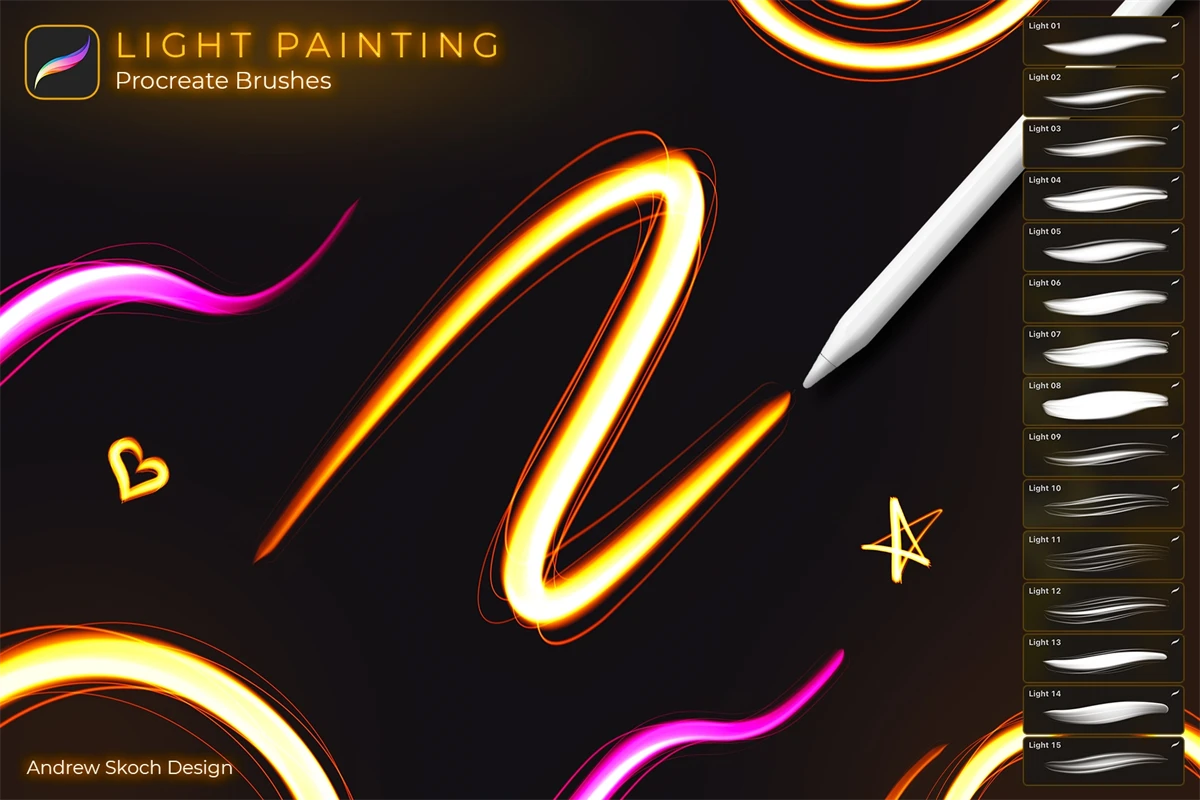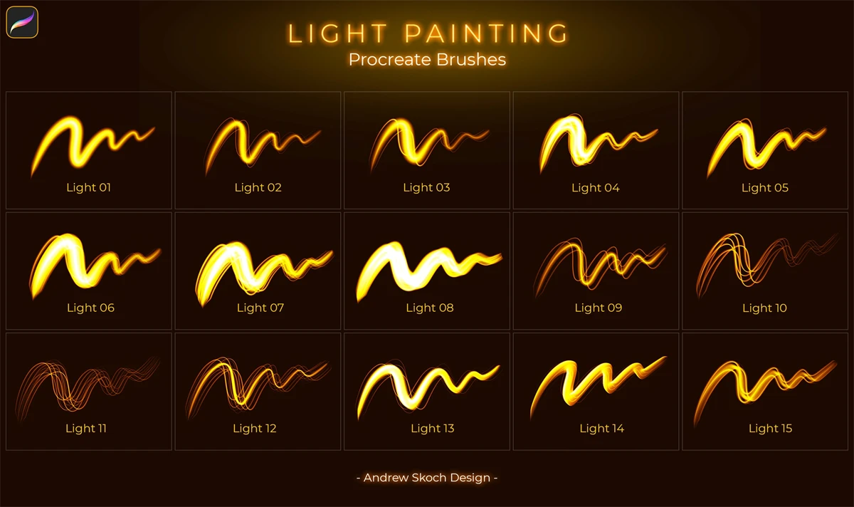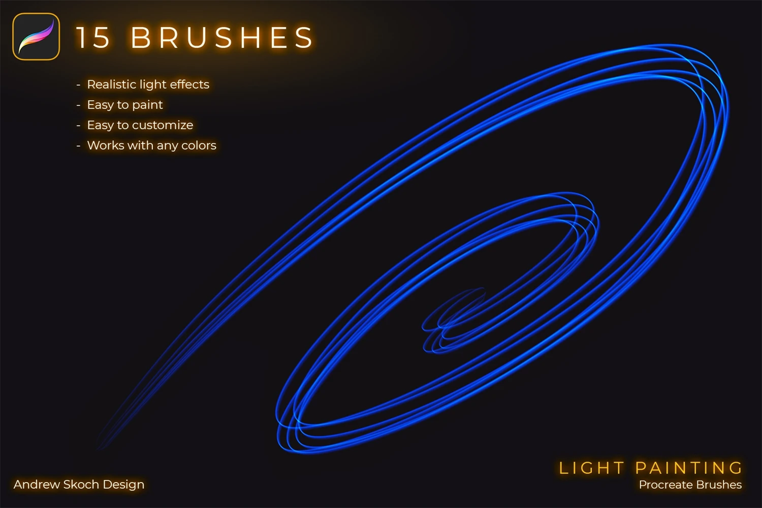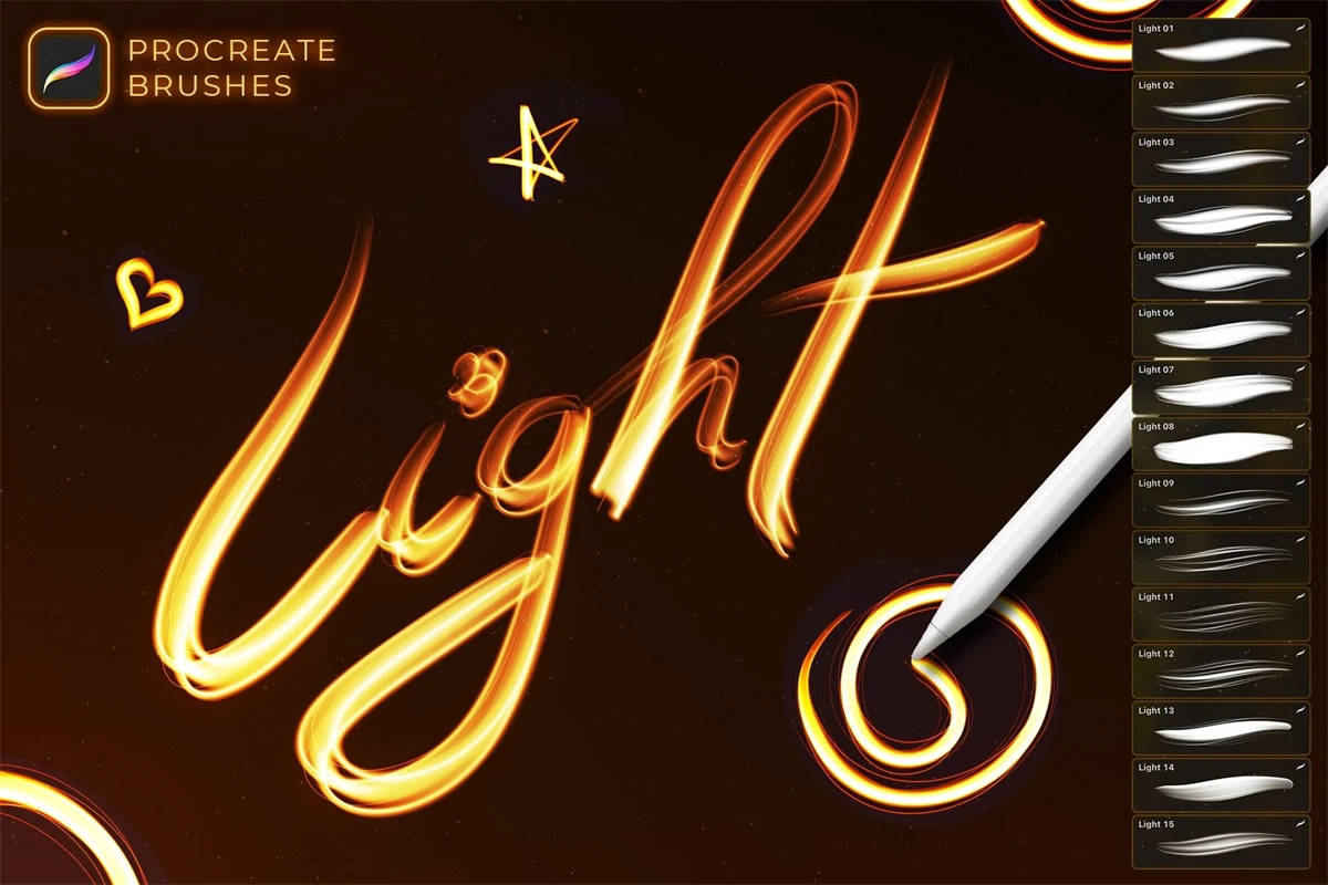 Get 15 brushes for procreate. Realistic lighting effect. 15 different light effects. Easy to add time lapse lighting effect to your photos.