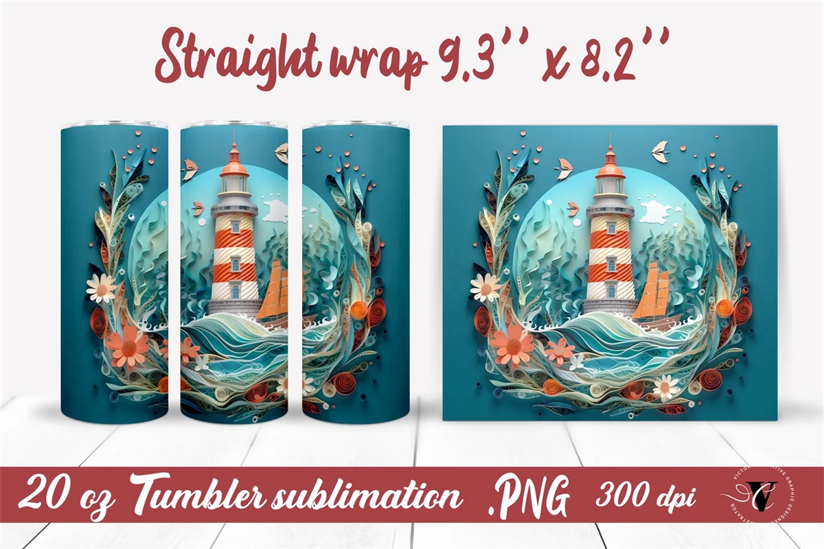 Lighthouse sublimation, 20 oz tumbler sublimation design bundle, tumbler wrap bundle, skinny tumbler, Quilling Tumbler wrap