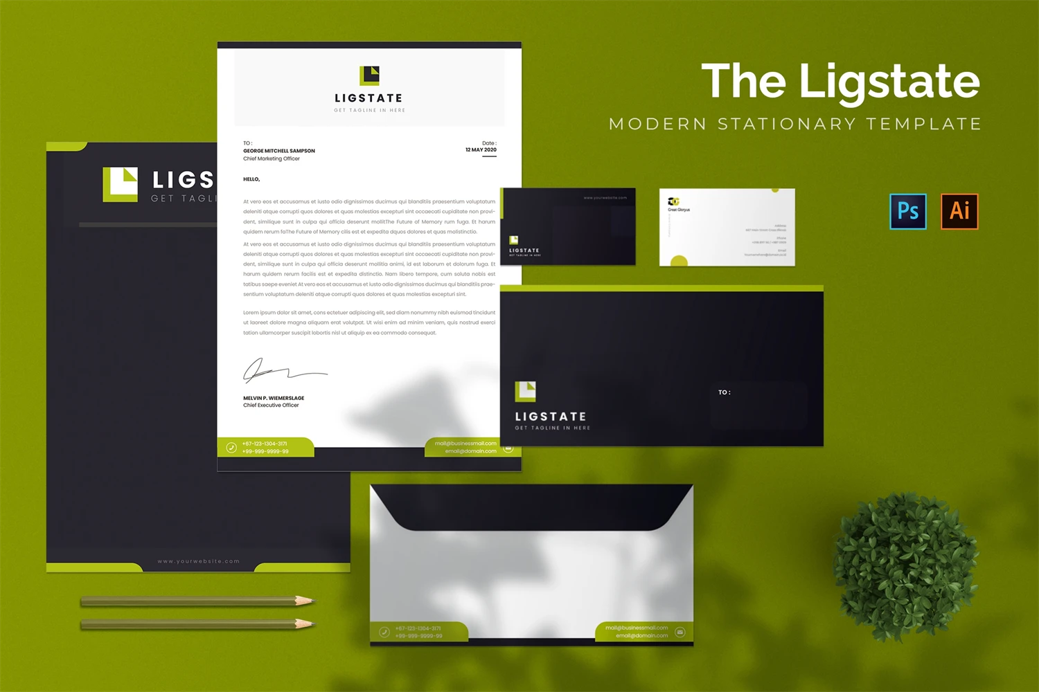 Lightstate - Stationary. This template is great for your business and this design will make your interested, elegant, and easily editable according to your needs. I hope you enjoy for this stationary.