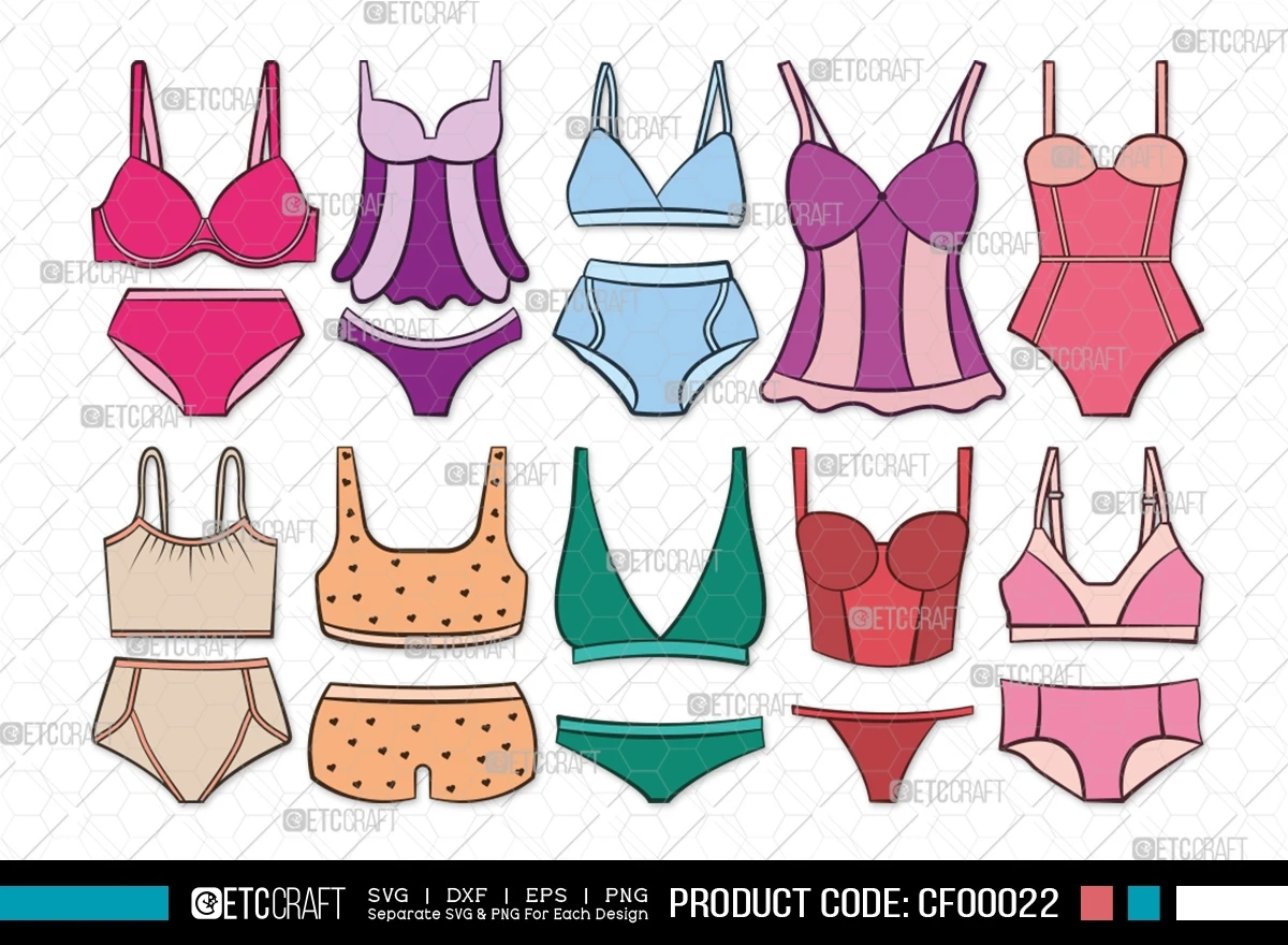 Explore the allure of our Lingerie Clipart Women's Sexy Sleepwear Bikini Fashion Clothing SVG Bundle, a captivating collection designed to add a touch of elegance and allure to your creative projects. Elevate your designs with these stylish and chic lingerie-themed clipart!