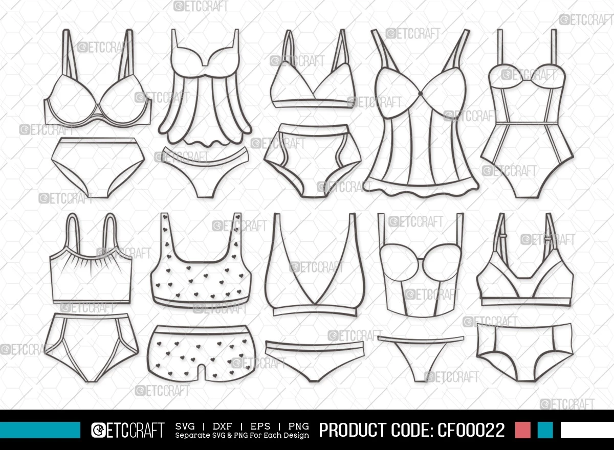 Introducing the Lingerie Outline Women's Sexy Sleepwear Bikini Fashion Clothing SVG Bundle, a curated collection of alluring digital clipart designed to elevate your creative projects. Embrace the essence of elegance and style with these chic lingerie-themed outlines.