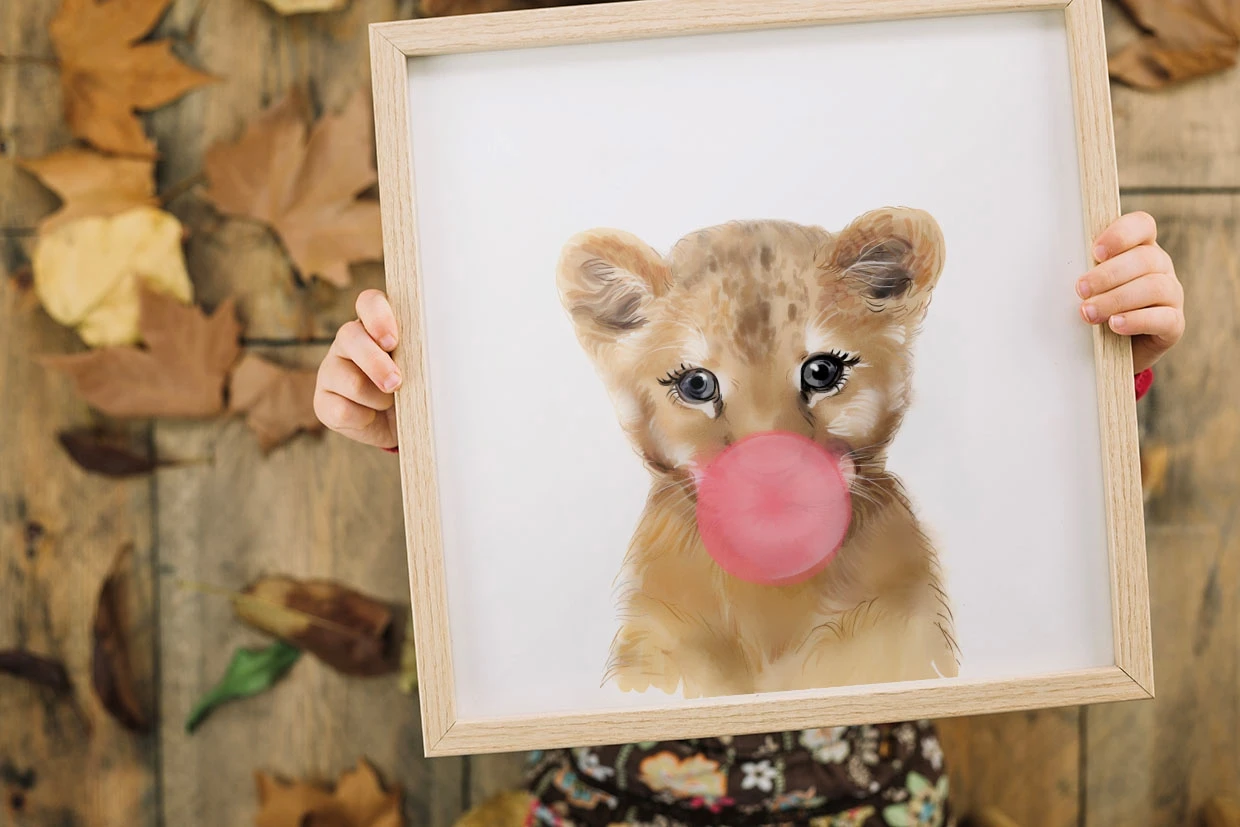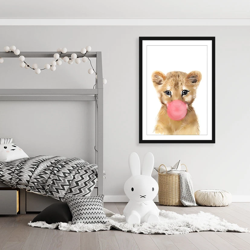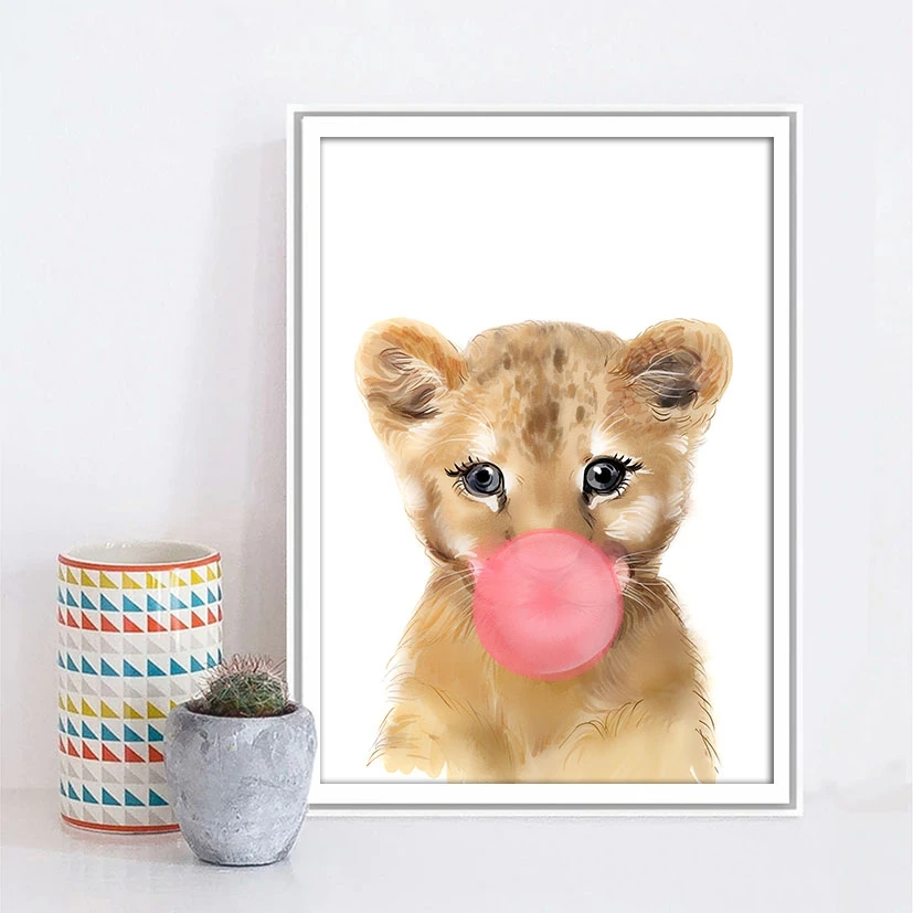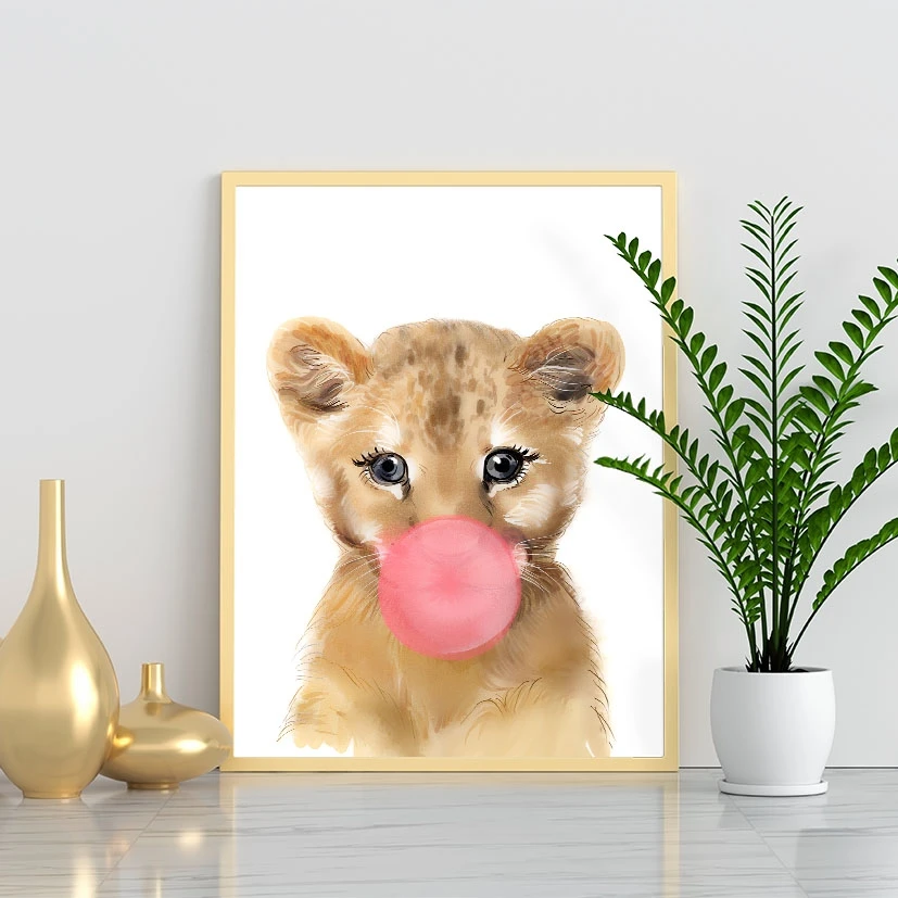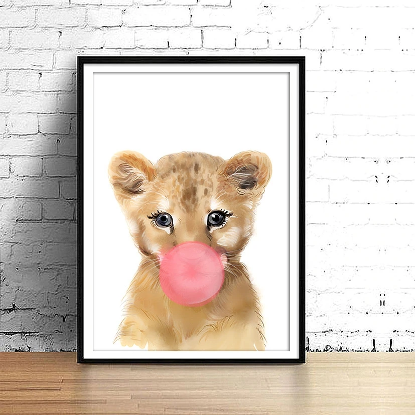 Lion with bubblegum print
