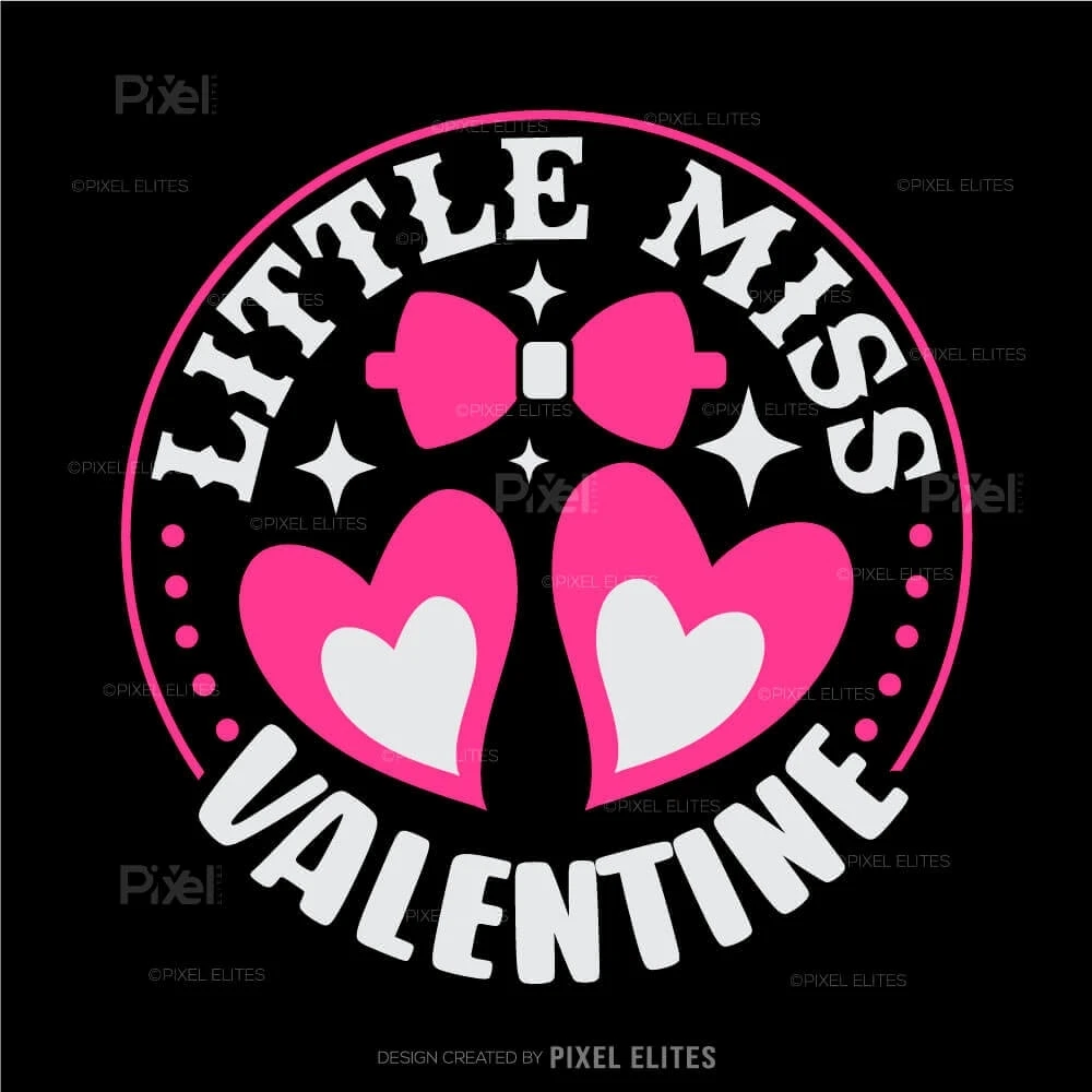 Celebrate the sweetest Valentine with the Little Miss Valentine SVG Cut Files, perfect for crafting adorable t-shirts and vinyl decals using your Cricut machine. This charming design featuring Hugs, Kisses, & Love is ideal for kids apparel, gifts, and decorations that bring smiles this Valentines Day.