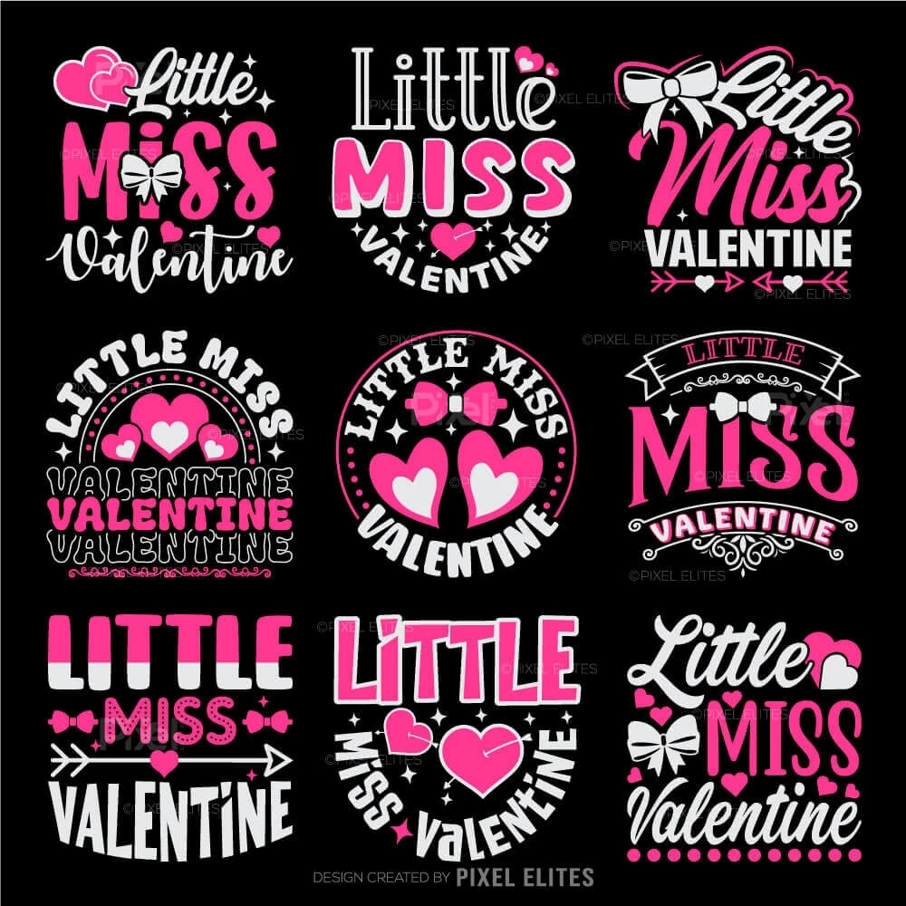 Little Miss Valentine SVG Cut Files T-Shirt Designs for Cricut Vinyl Decals Hugs, Kisses, & Love - Happy Valentine's Day