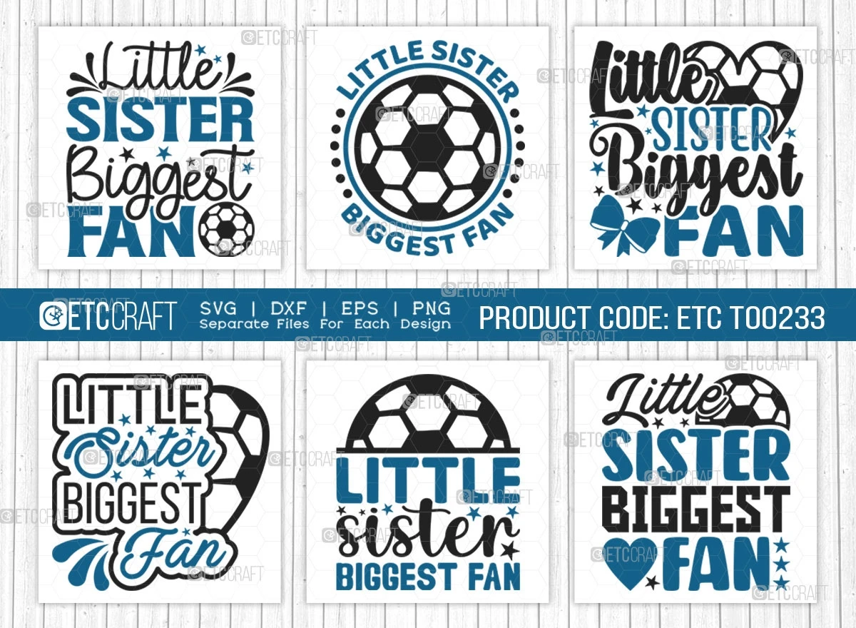 The Little Sister Biggest Fan SVG Bundle - a must-have for soccer enthusiasts! This versatile design pack includes soccer ball SVGs, sports-themed SVGs, soccer t-shirt designs, and inspiring soccer quotes. Whether you're a passionate supporter or a soccer player yourself, this bundle offers endless creative possibilities.