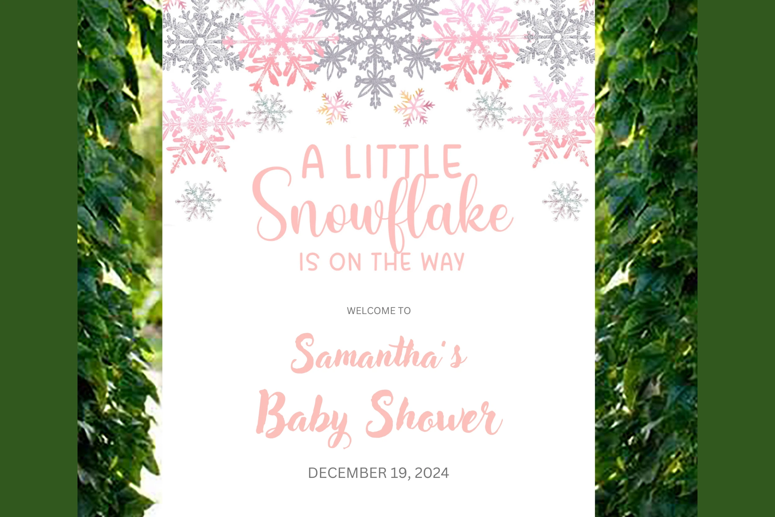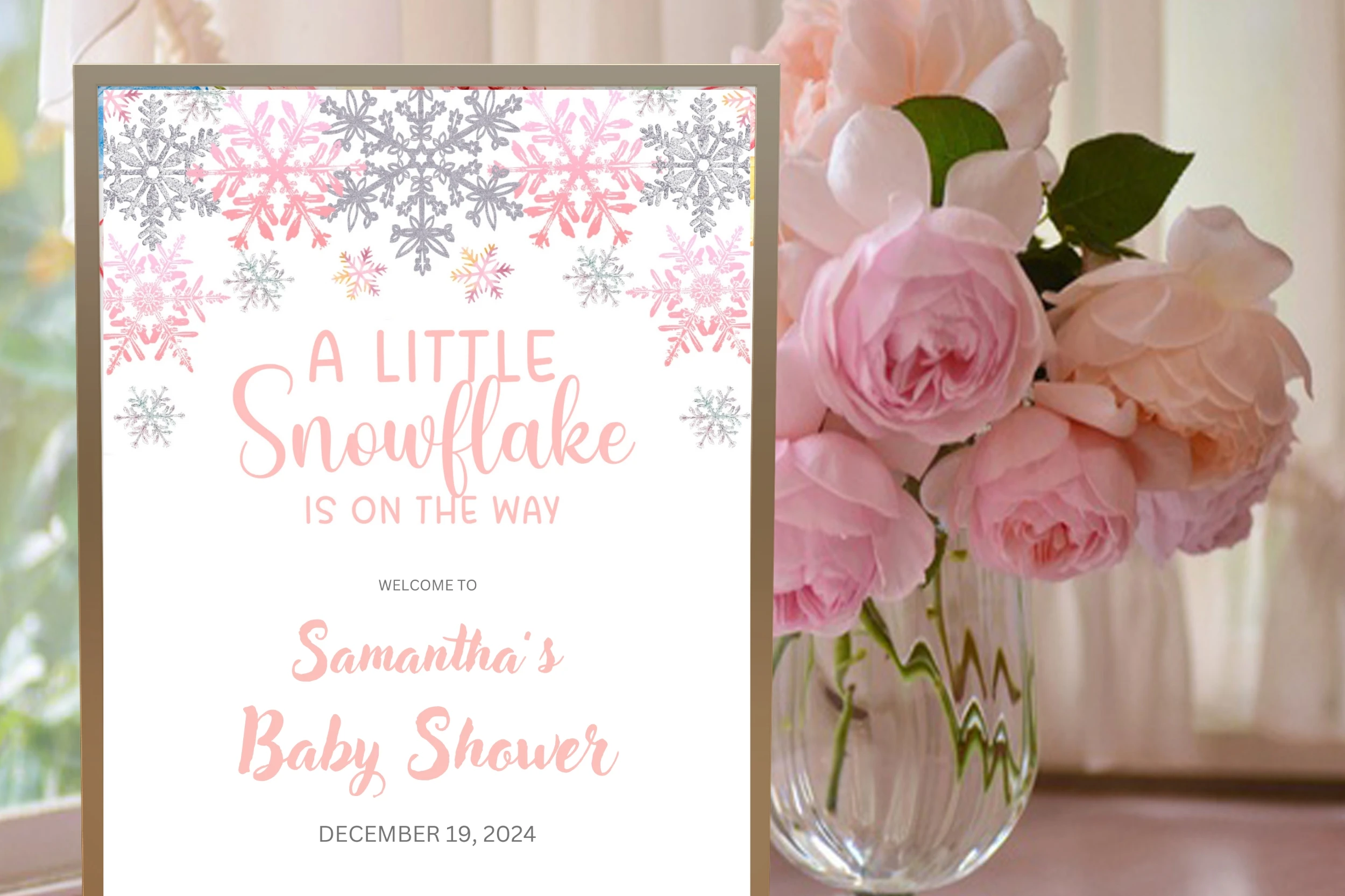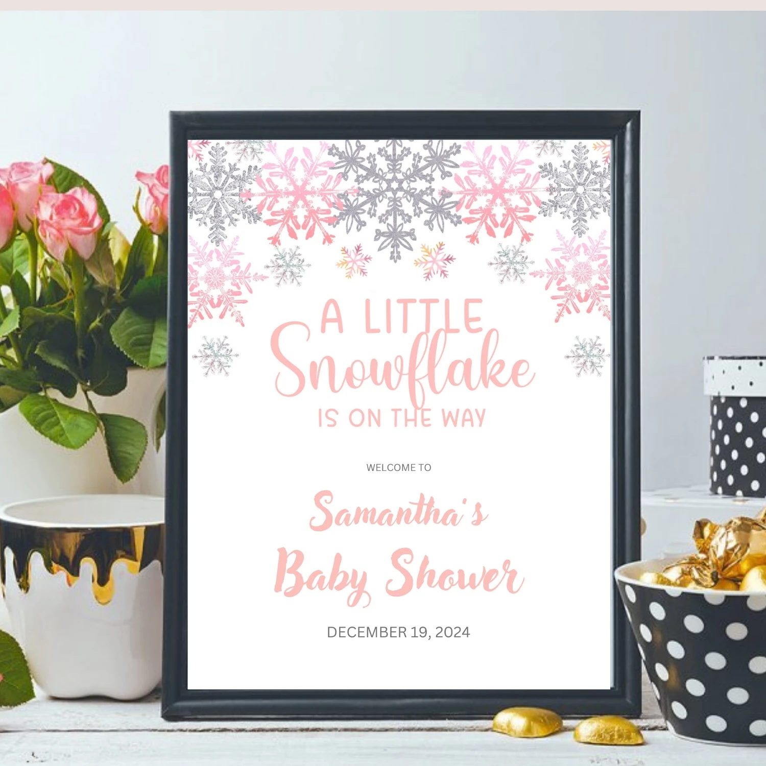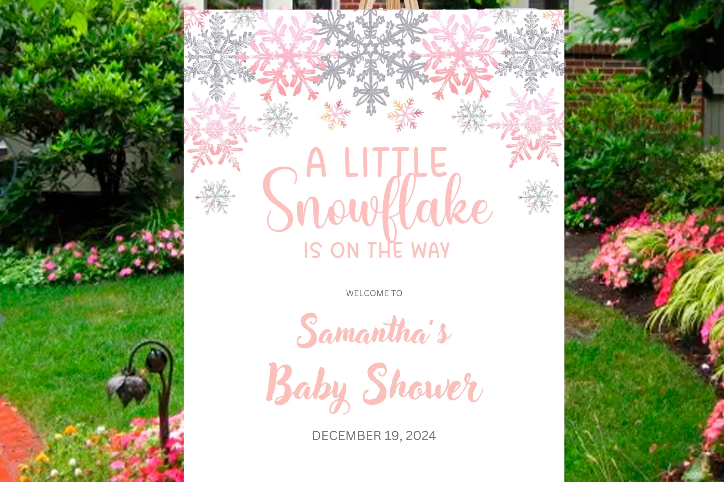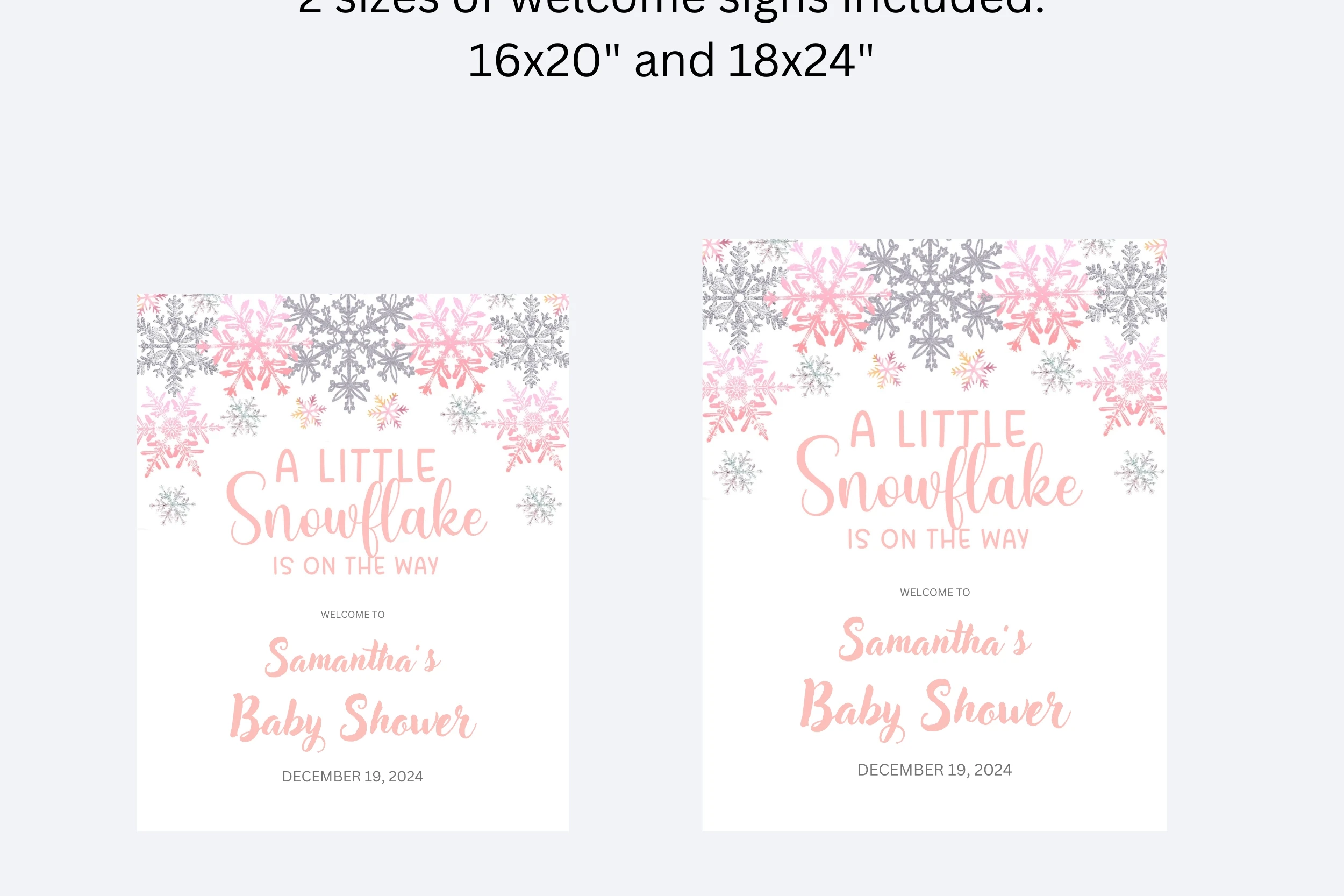 Welcome your guests in style with our delightful "Little Snowflake Baby Shower Welcome Sign." This enchanting sign features whimsical snowflakes and soft winter hues, creating a perfect ambiance for your baby shower during the chilly season. Whether its a cozy gathering or a festive celebration, this sign sets a warm and inviting tone at the entrance. Celebrate the impending arrival of your little one with a touch of winter magic and charm!