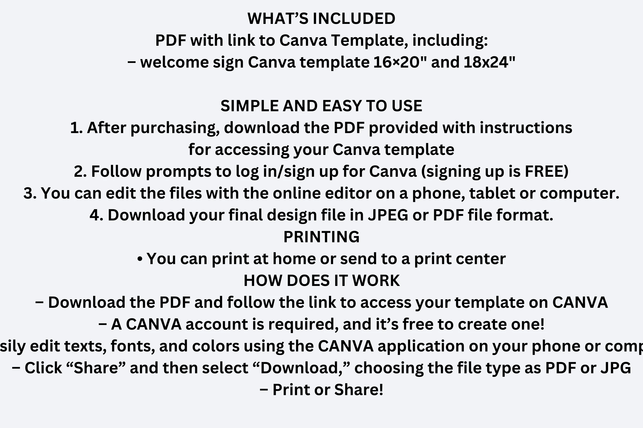 PDF with link to Canva Template, including: