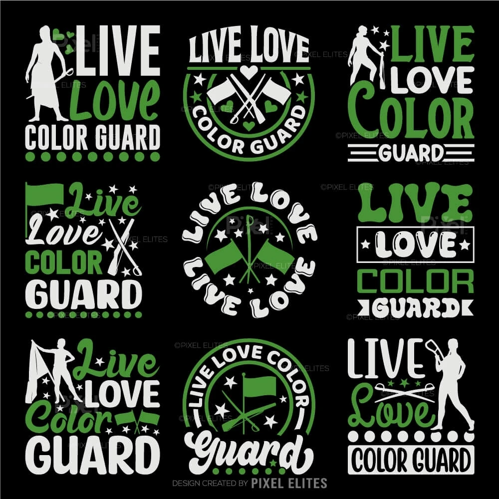 Live Love Color Guard SVG Cut Files - T-Shirt Design, DIY Shirt Gift, Cricut File & Craft Bundle for Color Guard Squad