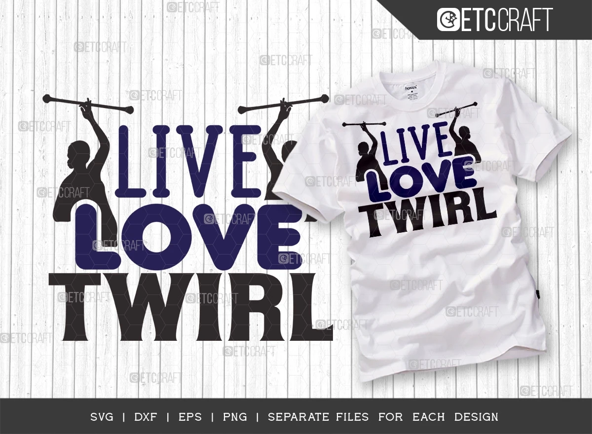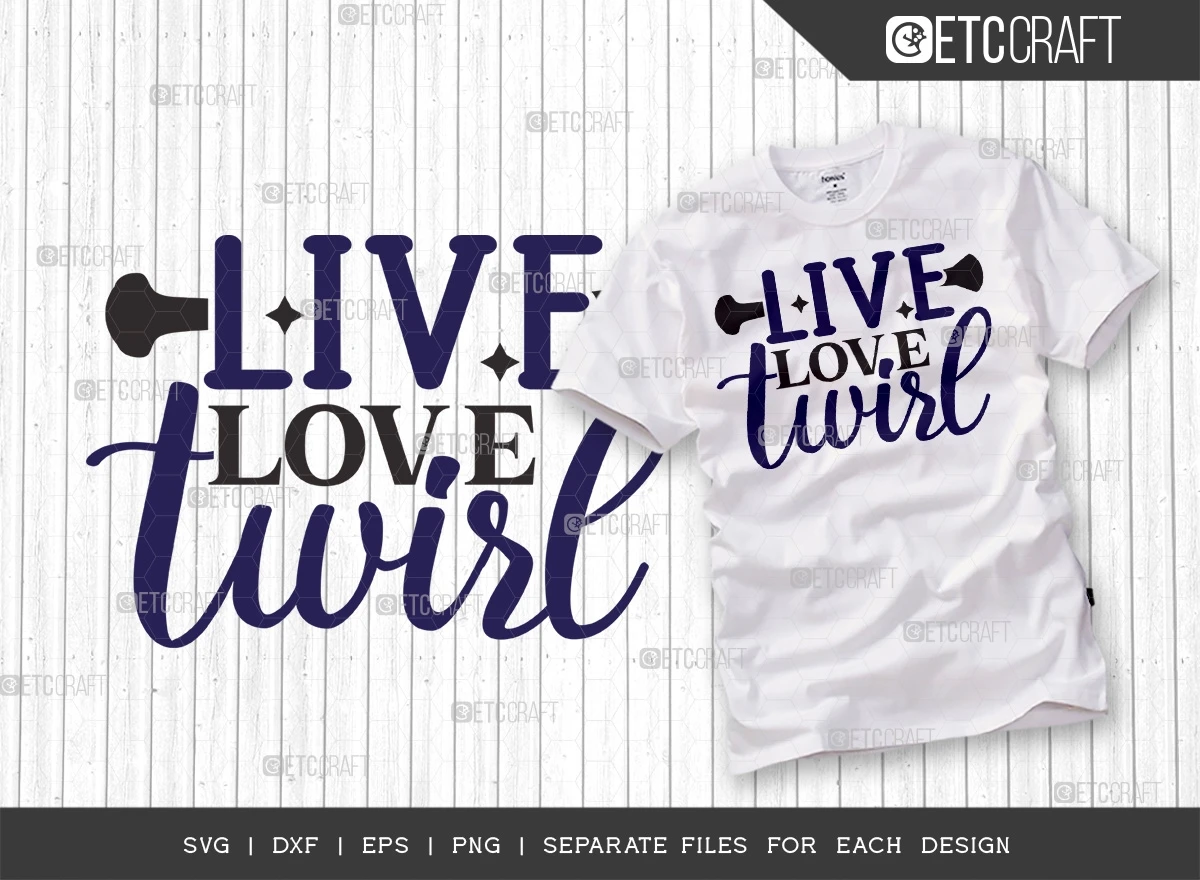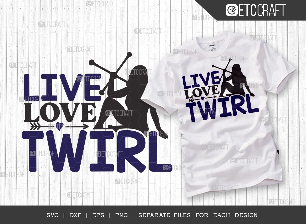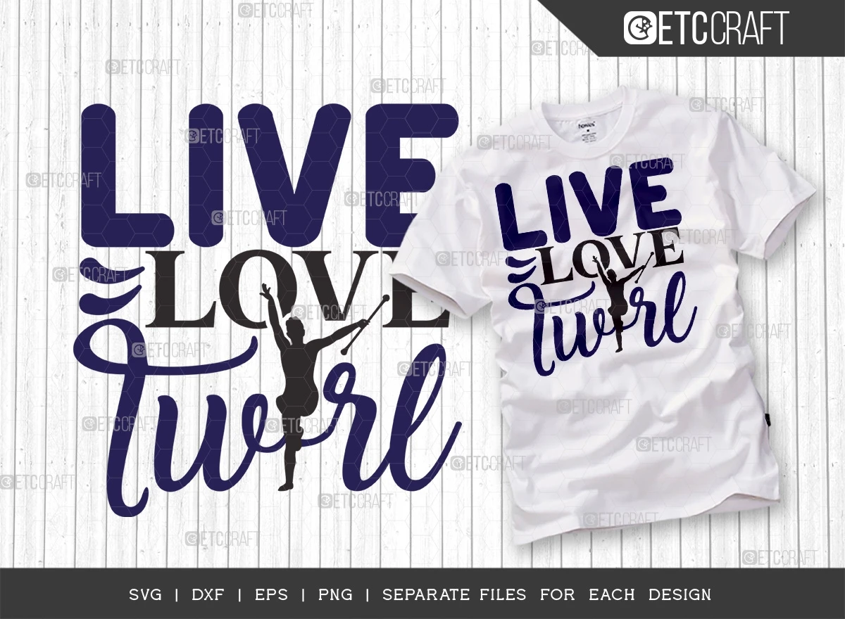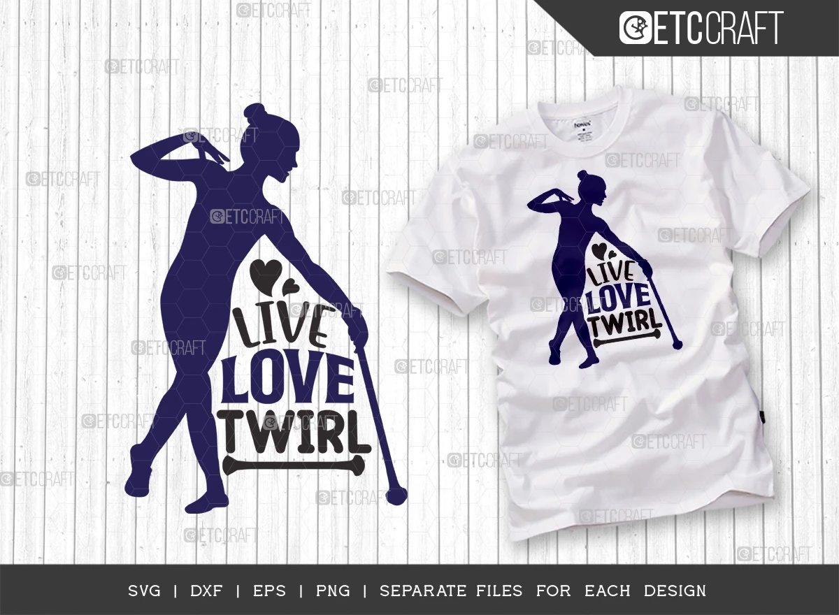 Our exclusive Live Love Twirl SVG Bundle, a must-have for all twirlers, baton gymnasts, and twirl enthusiasts. This versatile t-shirt design is perfect for showcasing your love for twirling and gymnastics.