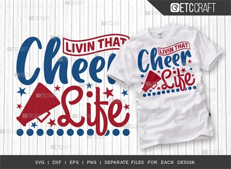 Introducing the Livin That Cheer Life SVG Bundle - a dynamic t-shirt design that perfectly captures the spirit of cheerleading. This versatile SVG bundle is a must-have for cheer enthusiasts, offering a range of benefits and uses. Get ready to cheer your way to the top with this one-of-a-kind design!