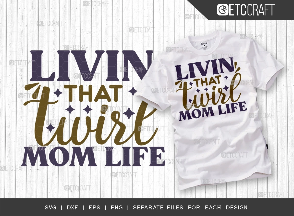 The Livin That Twirl Mom Life SVG design features eye-catching typography that showcases your love for twirling and being a mom. Stand out from the crowd with this one-of-a-kind design.