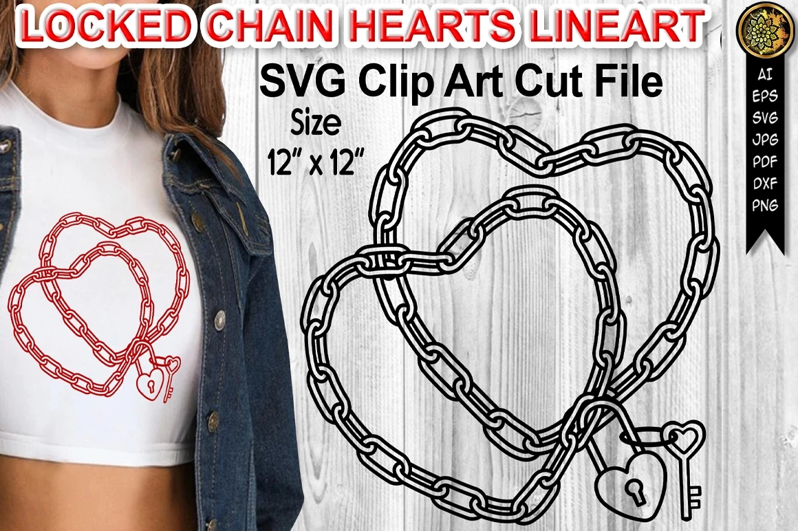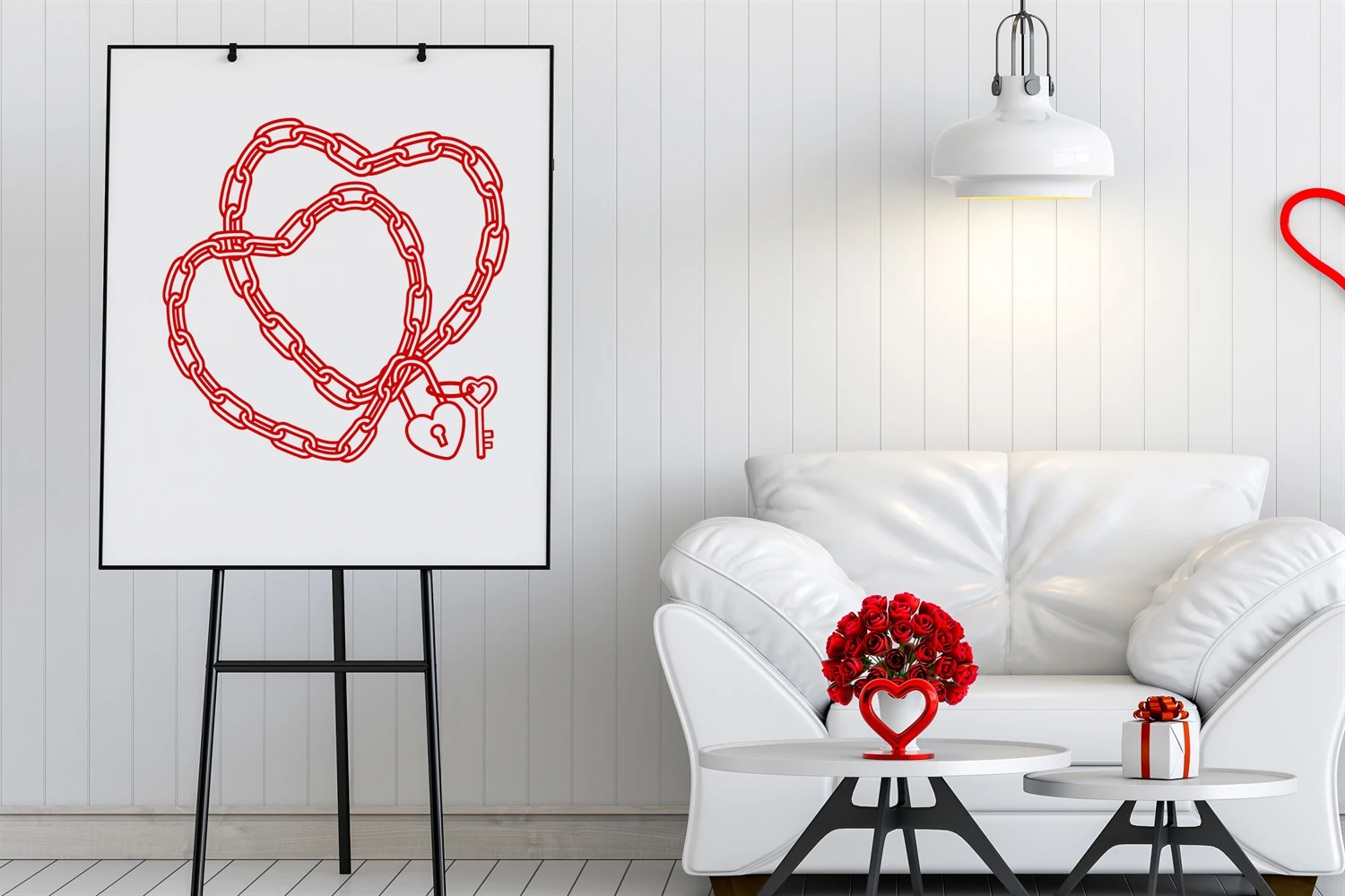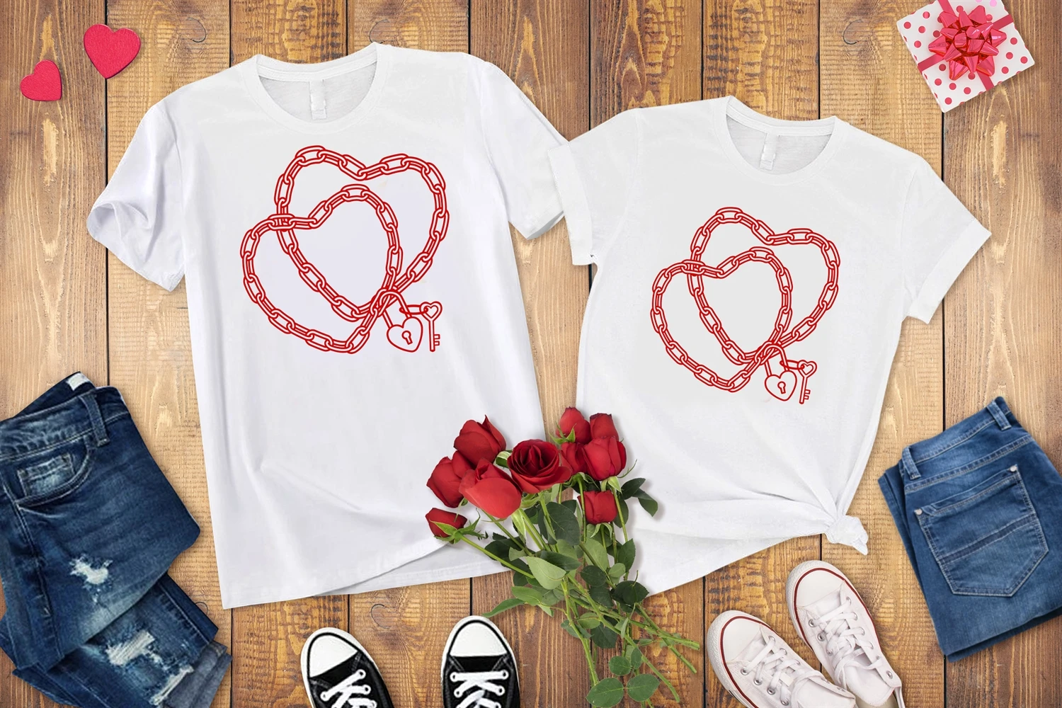 Valentine Chain Hearts Locked with Key SVG Clip Art Couple Love Heart Shape Line Art Design Cut File for your creative DIY projects and Home Decorations. Perfect for vinyl, personalized T-shirts, apparel, cups, stickers, card stock, and other DIY projects. Options are endless! The design comes in a black color version for easy to change the color as your choice.