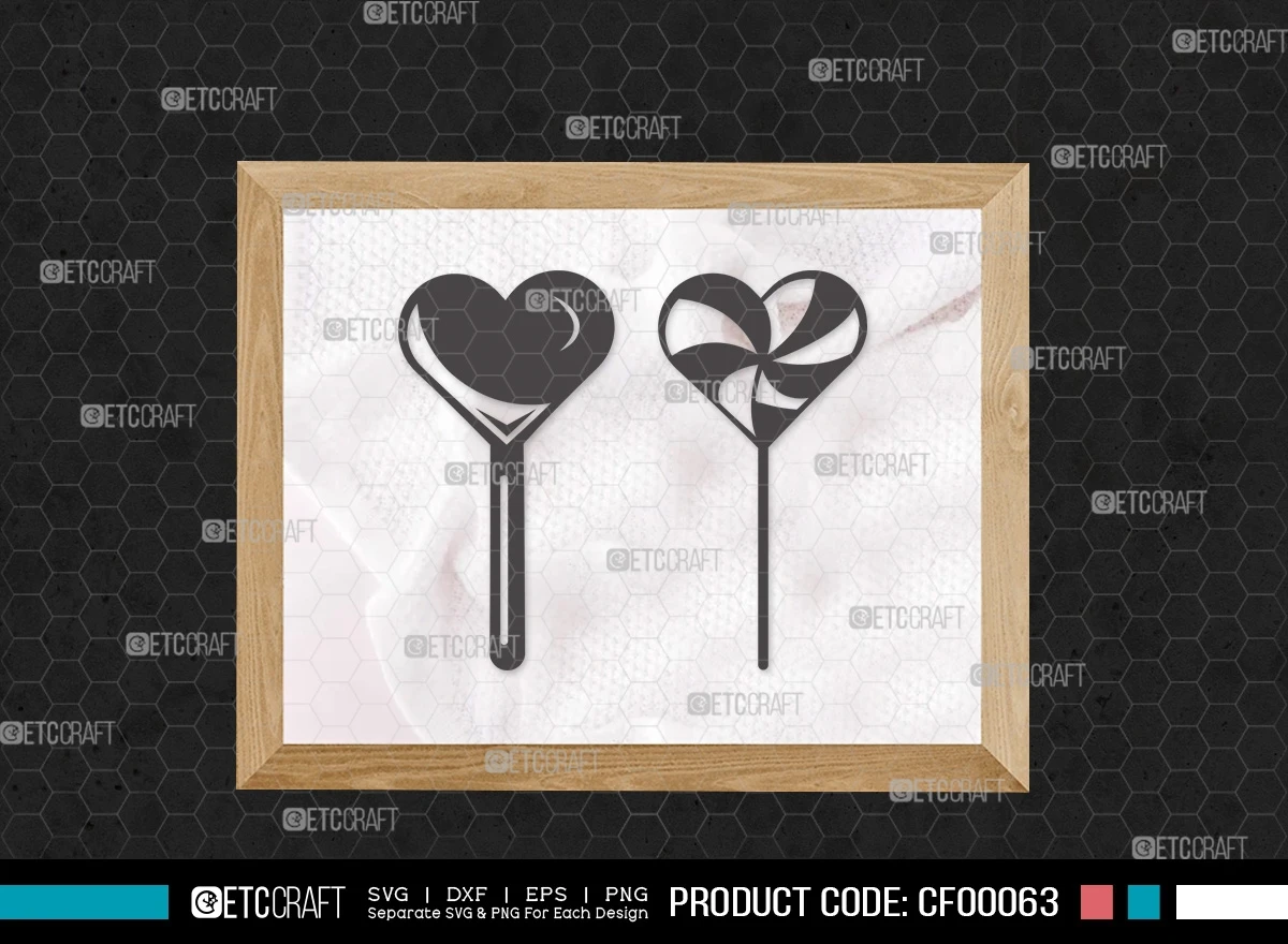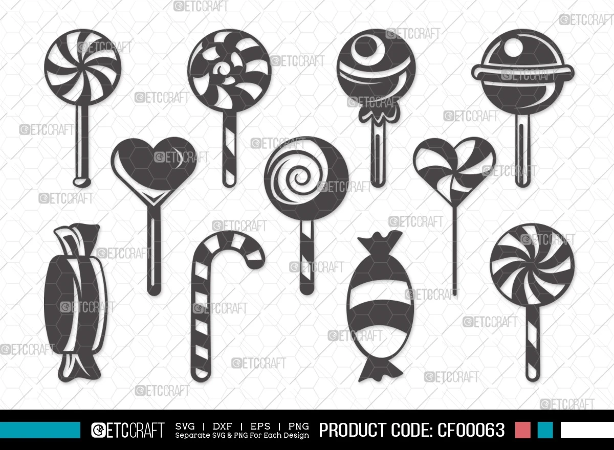 Explore the world of sweetness and creativity with our "Lollipop Silhouette Sweets Round Candy Swirl" SVG cut file bundle. Add a delightful and whimsical touch to your designs and let your creativity shine!