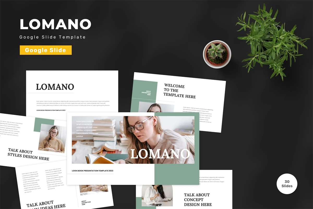 Get it now! **Lomano - Google Slide Template** for All Business and Personal Needs All elements on this template are editable; input your content, replace your image with a placeholder, change the color, and all presentations include an animated slide to present your slides.