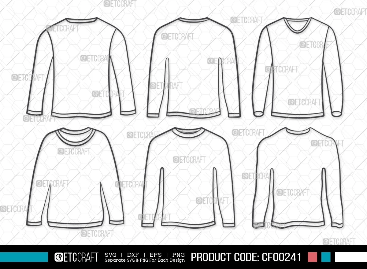 Elevate your fashion design projects with our Long Sleeve T-shirt Outline Mens Fashion Wear Simple Plain Outfits SVG Cut File Bundle. This comprehensive collection of SVG files provides you with a versatile array of fashion elements to create stylish and timeless men's apparel designs. These clean and classic t-shirt outline elements offer endless possibilities for your creative endeavors.