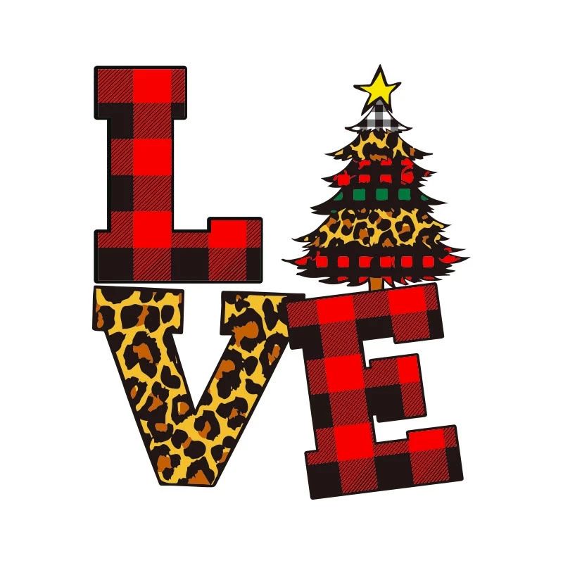 Love christmas Svg, Leopard Christmas Svg, Buffalo Plaid Svg