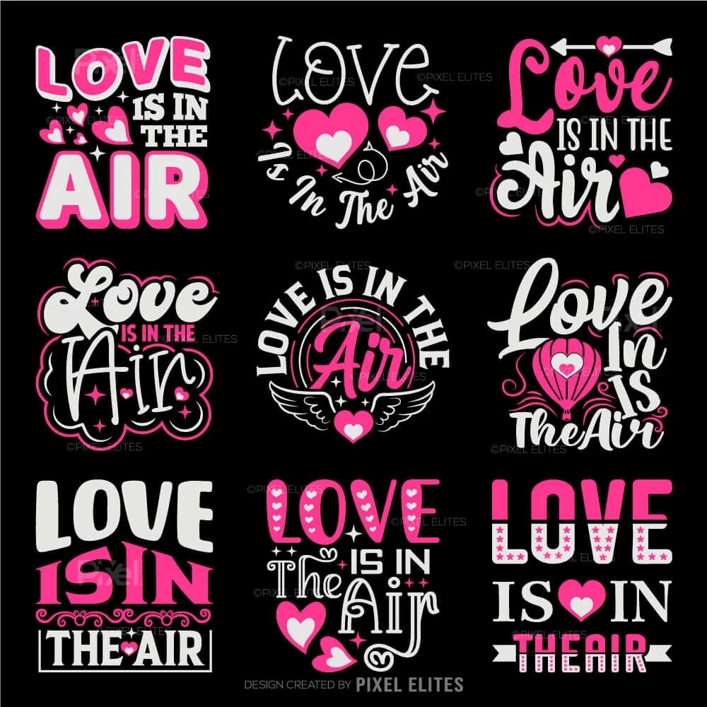 Love Is In The Air SVG Cut Files T-Shirt Design & Vinyl Decal for Valentine's Day