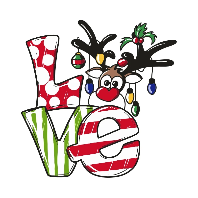 Love reindeer Svg, Christmas lights Svg, Love Sublimation