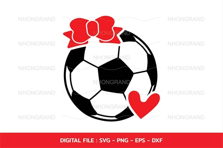 love soccer cute with red bow and red heart, lover gift t-shirt, Cricut Files, svg, png, eps, dxf, Instant Download
