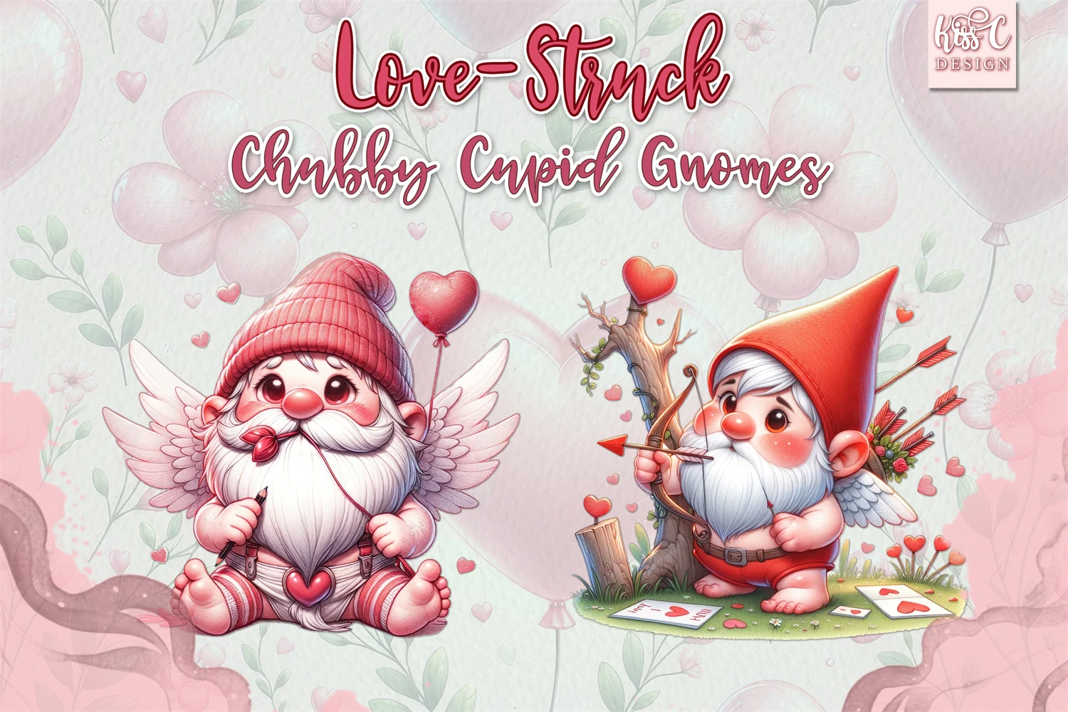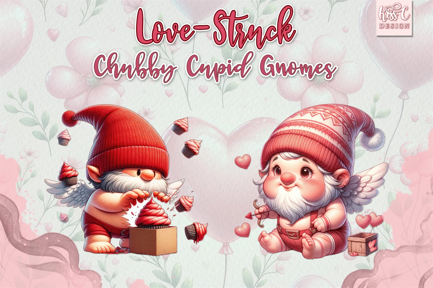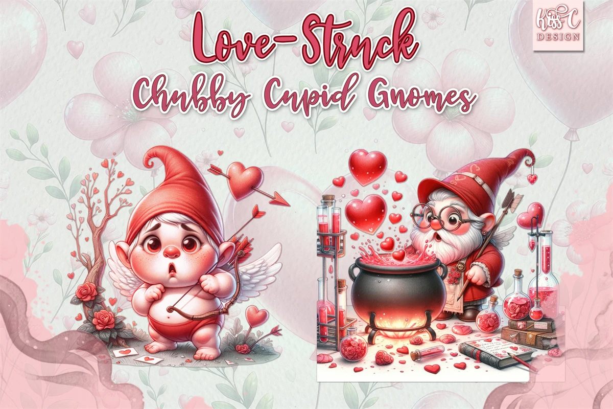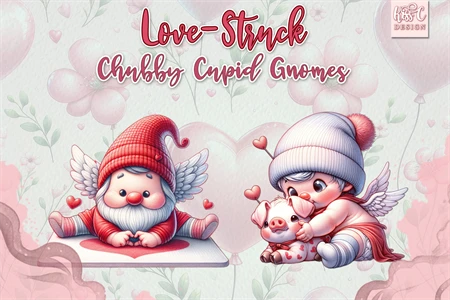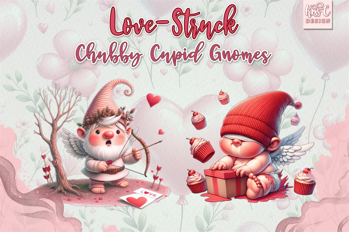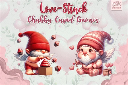 This collection features charming, clumsy gnomes in vibrant red valentine colors.