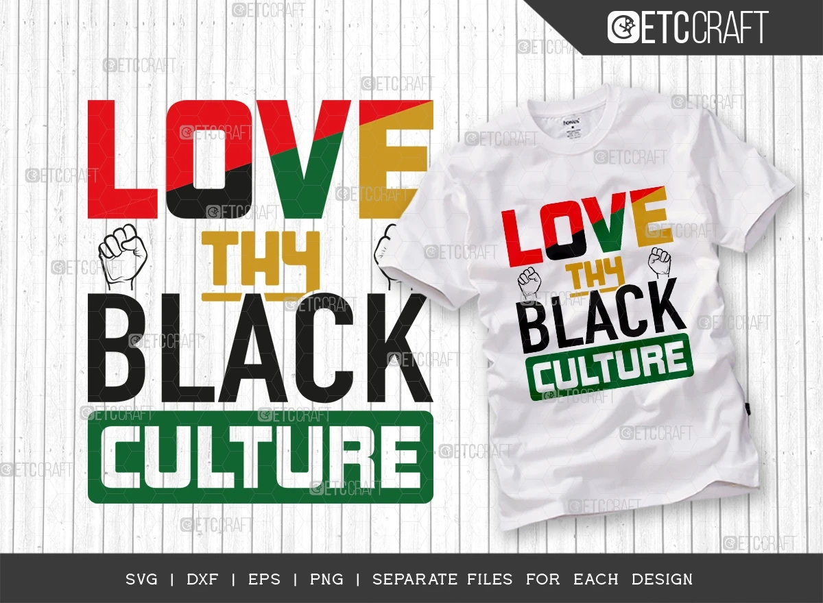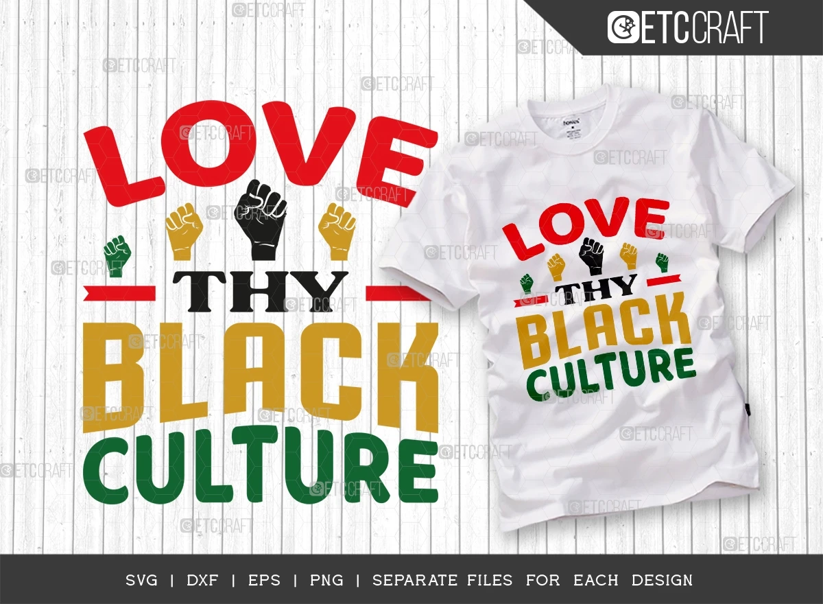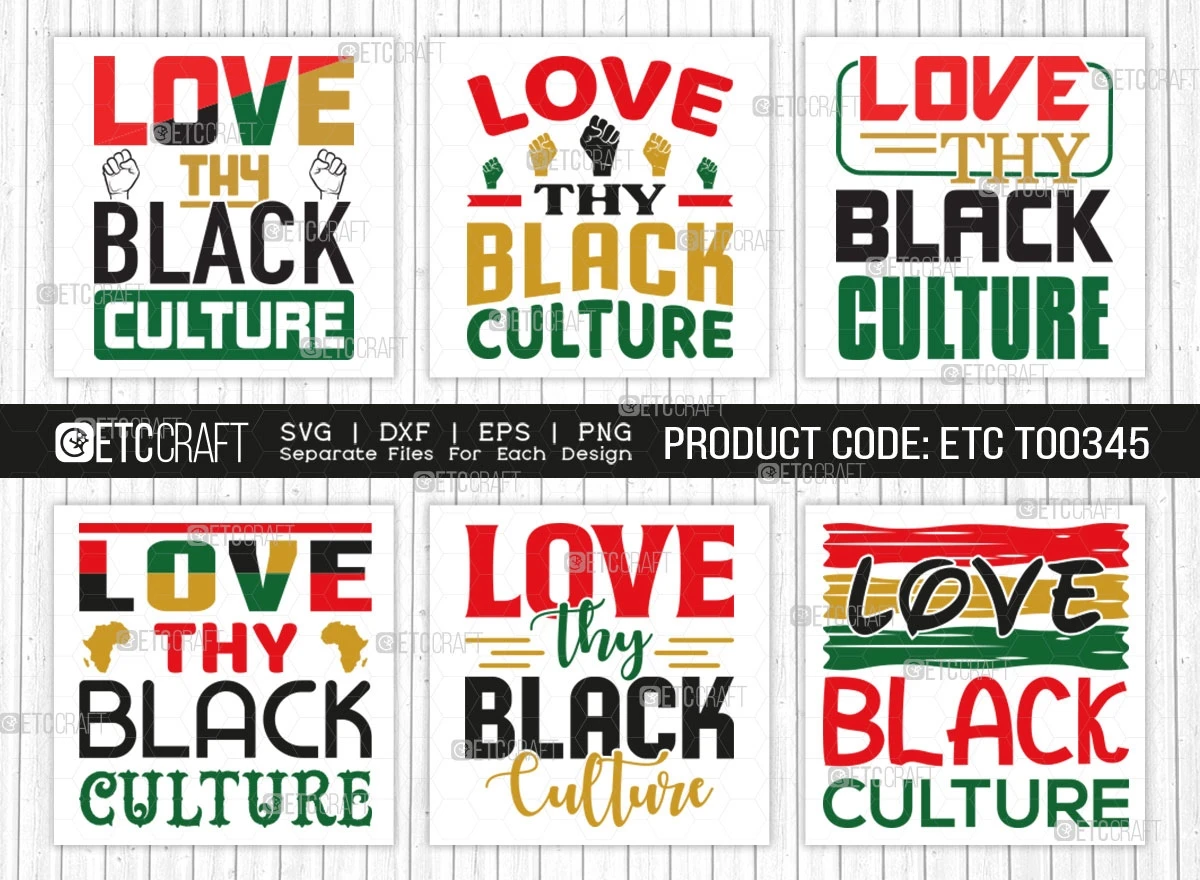 The Love Thy Black Culture SVG Bundle - a collection of striking designs celebrating Black women, Afro men, and the rich heritage of African American history. This bundle is a perfect addition to your design library, with its versatile and eye-catching graphics that can be used for many purposes.