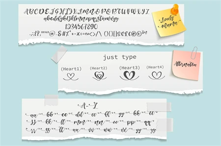 Lovely Mama I Love You Font is a delightful duo of fonts designed to bring a touch of charm and cheer to your creative projects. This font set consists of two beautifully crafted fonts that complement each other perfectly. Whether used together or individually, Lovely Mama I Love You Font is ideal for adding a chic and stylish vibe to your crafts. With its PUA encoding, accessing all the unique glyphs and swashes is a breeze! Explore the endless possibilities and let your creativity shine with Lovely Mama I Love You Font. "