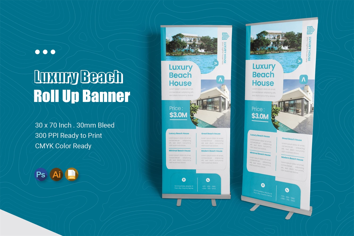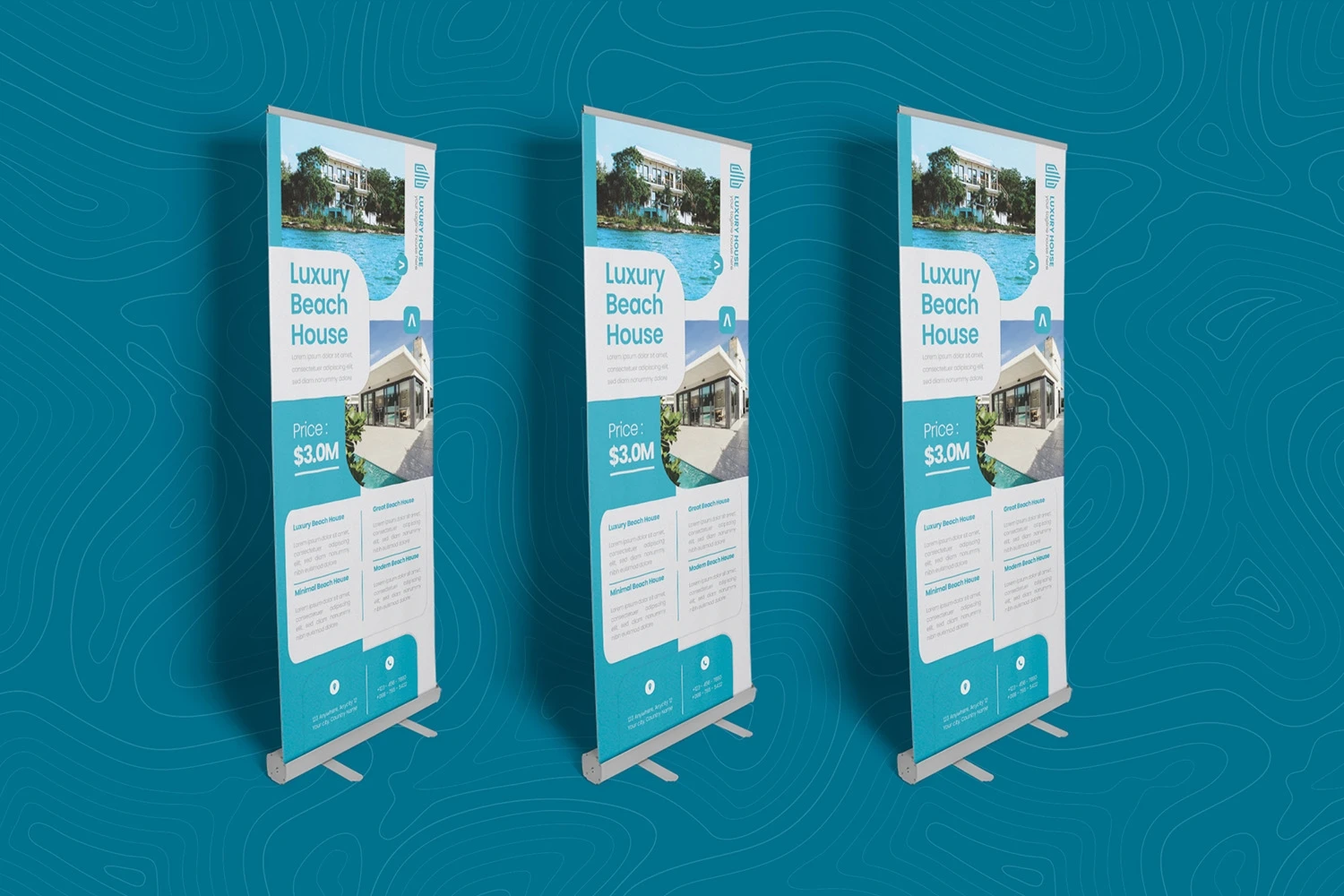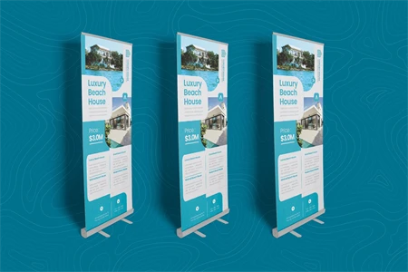 The versatile roll up banner template is very easy to use, modify and customize. Use this roll up banner and make the most of your campaign!