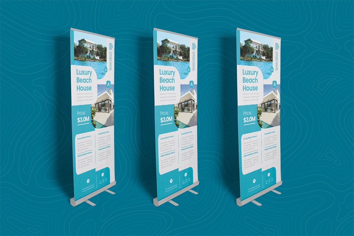 This roll up banner is perfect for all types of businesses such as property, discount promosi, etc.