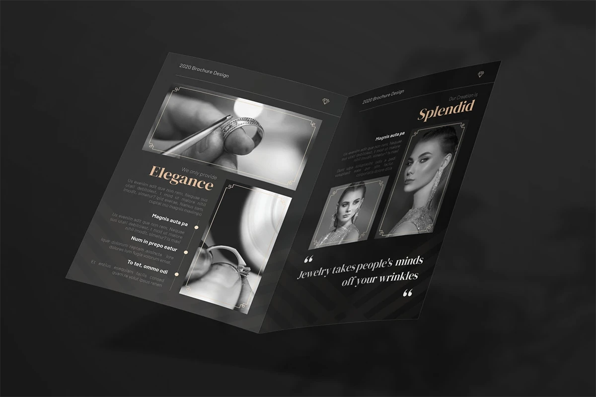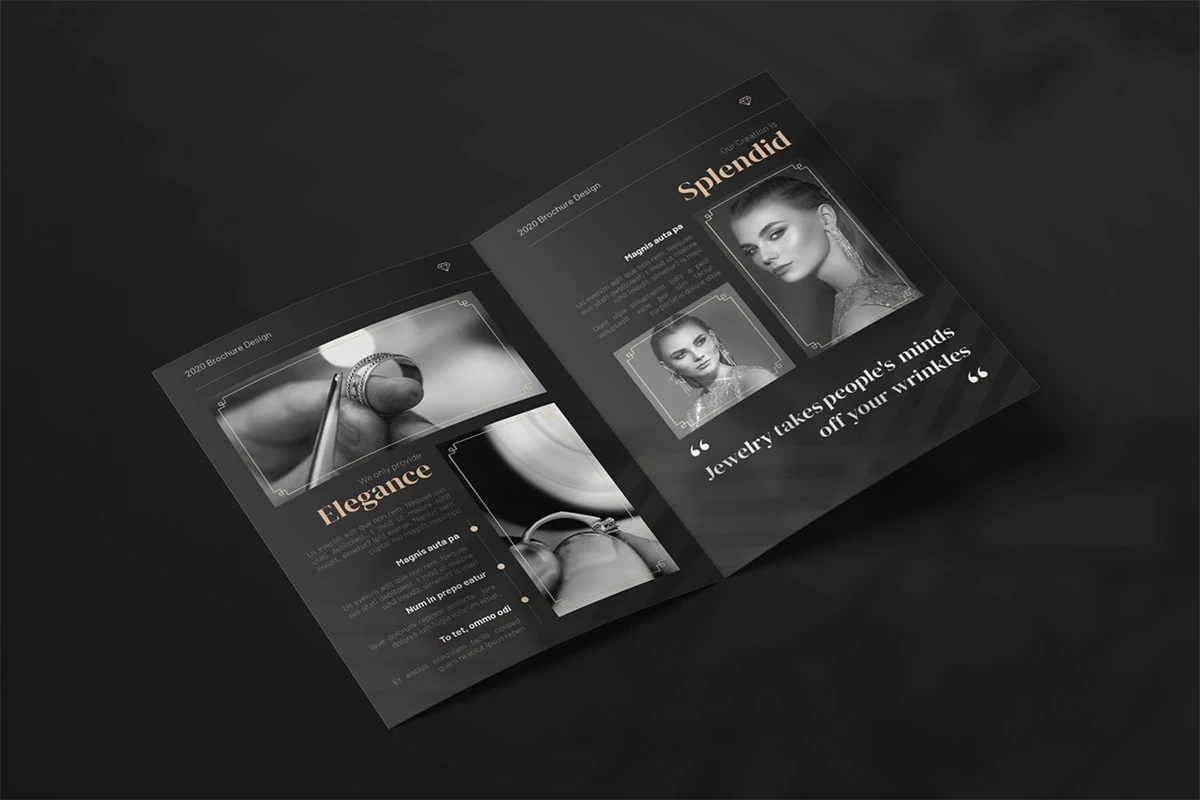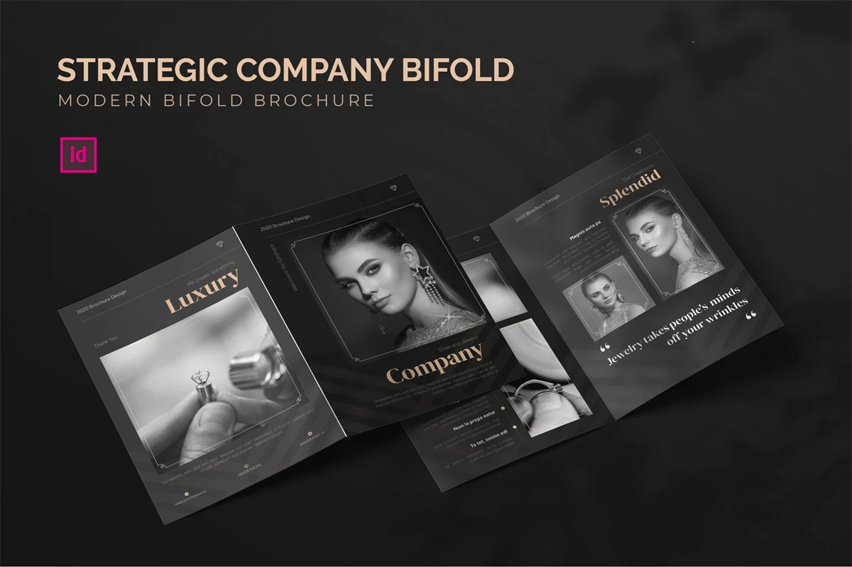 Luxury Jewelry - Bifold Brochure We present this Bifold Brochure for you, simple and very elegant, and this Bifold Brochure is suitable for all types of your business, made with adobe inDesign, very easy to customize, Hope you Like it, dont forget to rate, Thanks.