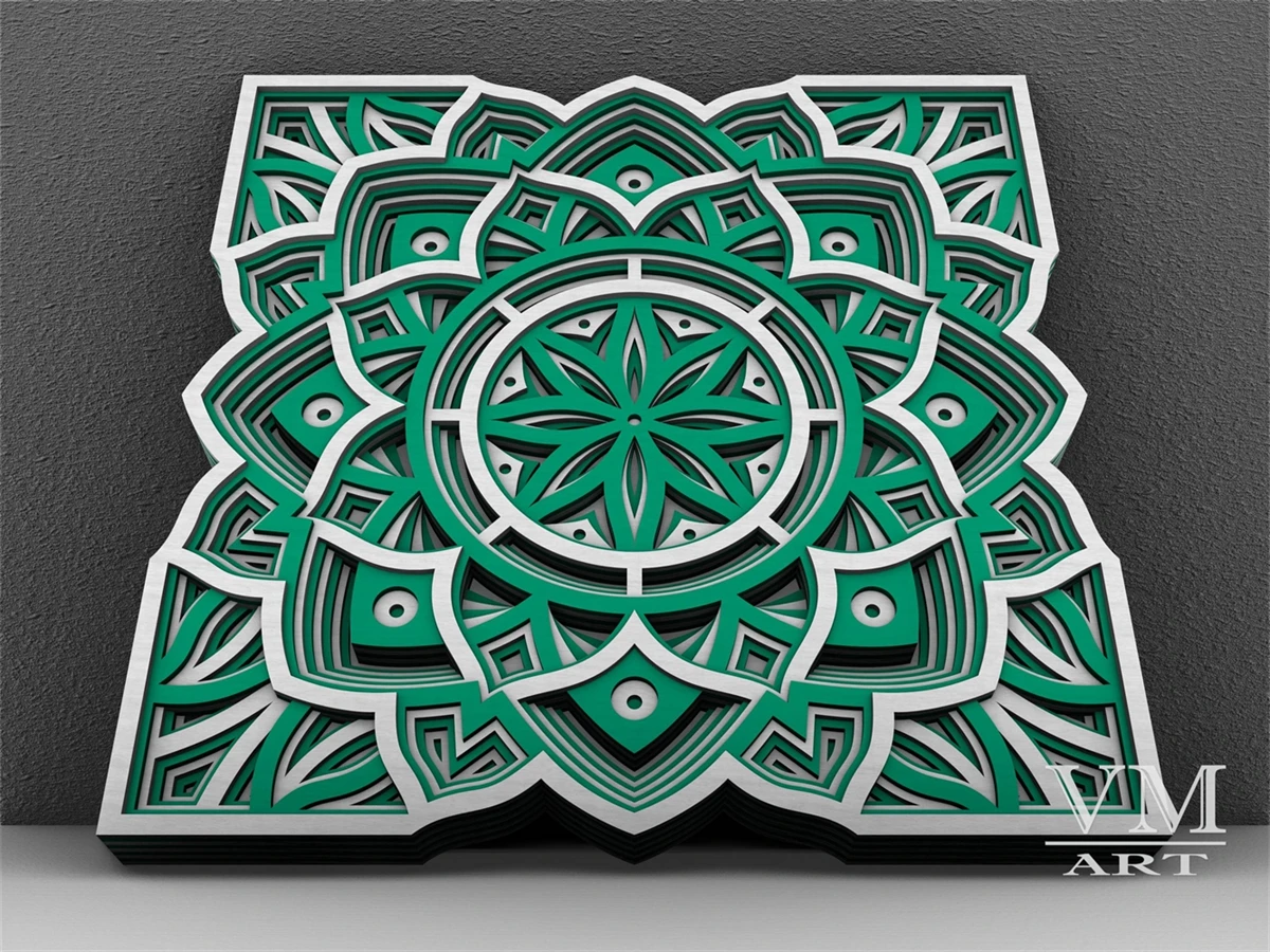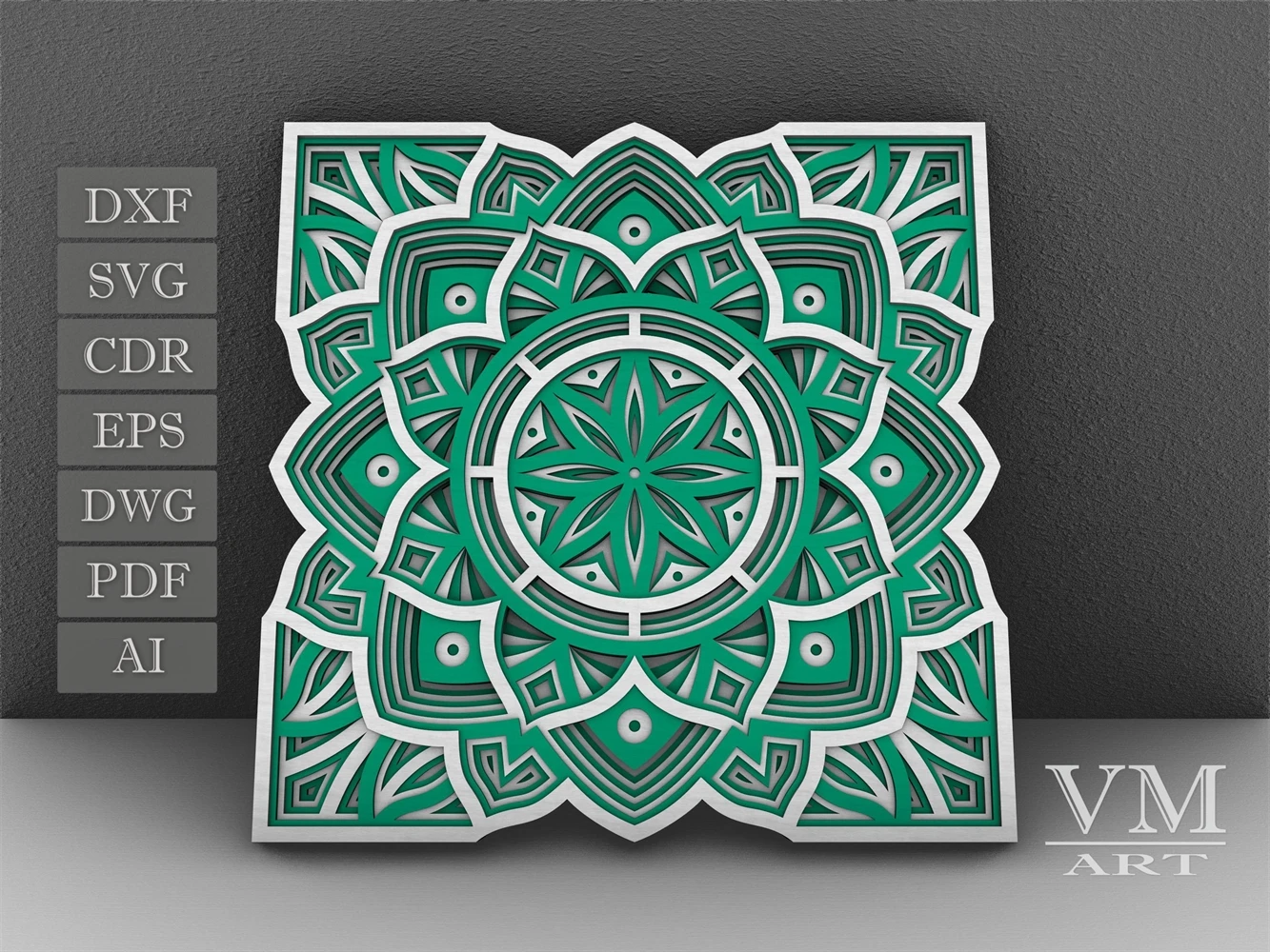 M01 - Layered Mandala SVG File, 3D Flower Mandala, Cut file, Laser cut file Mandala DXF file, Layered Mandala SVG for Cricut
